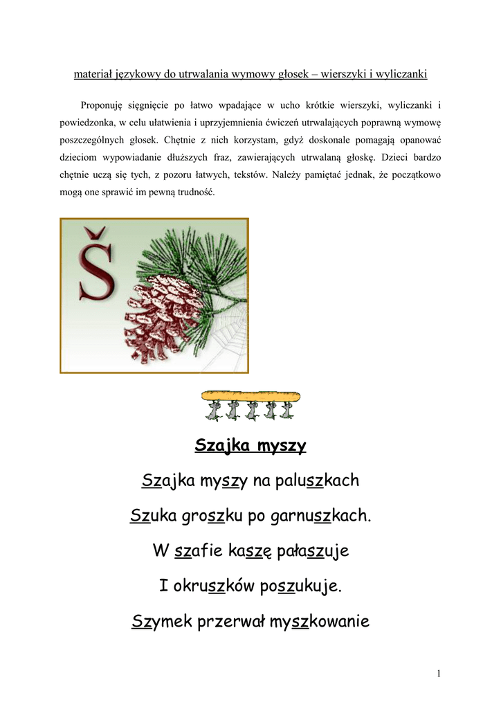 materiał językowy do utrwalania wymowy głosek – wierszyki i