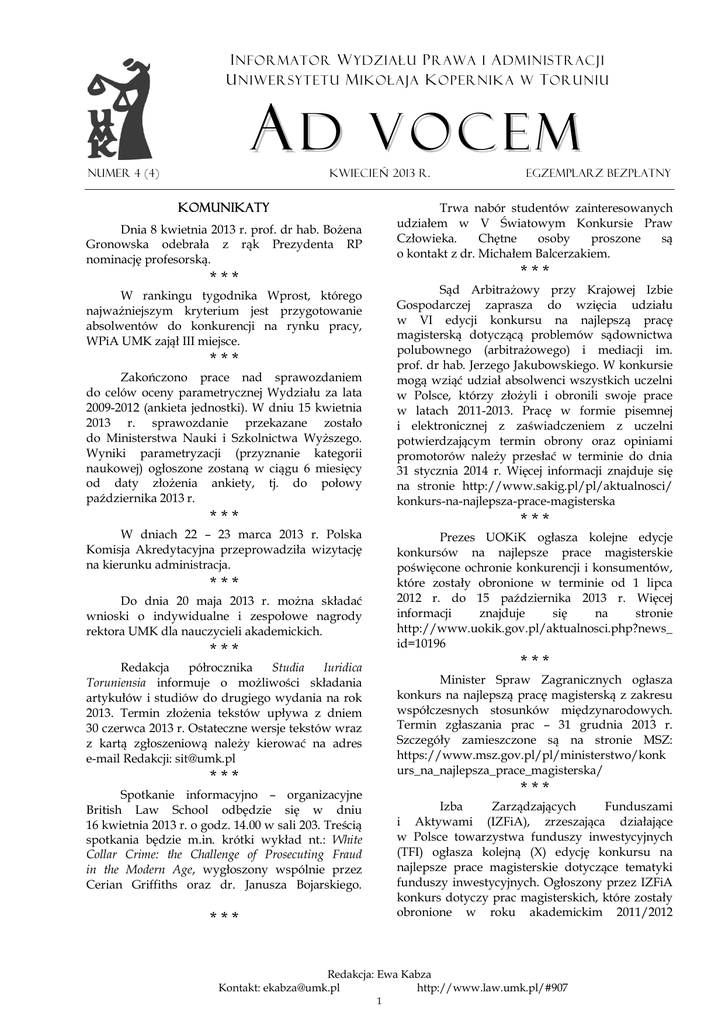 Ad Vocem 2013, nr 4 - Wydział Prawa i Administracji UMK
