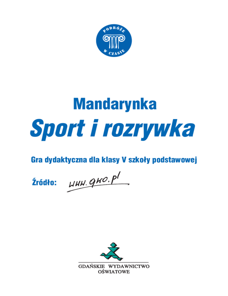 Mandarynka Sport i rozrywka Gra dydaktyczna dla klasy V szko³y podstawowej ród³o: Tak wygl¹da mandarynka. 3 3 5 8 8 1 1 4 4 5 2 2 6 6 7 7 Umieszczone na niej liczby symbolizuj¹ znaczenia, które nale¿y dopasowaæ tak, aby wszystkie elementy utworzy³y ko³o —przekrój mandarynki. 5 2 6 2 3 1 3 4 4 5 7 Materia³y dydaktyczne zamieszczone na stronach www.gwo.pl 8 1 8 6 7 Ateny Antyczn a, By³a ona brutalna dyscyp lin po³¹czen iem zapa a sportowa. sów i bo ksu. wie ny w i l o c e ni Zawody s religijne portowe i uro c , z organiz które staro¿ytn ystoœci ow i to has³o ali co cztery la Grecy ta w Oli sk³ada s iê z d wóch s mpii. Uwaga: ³ów. tion pankra Miasto, w któr ym w 18 96 roku zorganiz pierw sz e no owano w o¿ yt ne igrzyska ol impijskie. bal Materia³y dydaktyczne zamieszczone na stronach www.gwo.pl a olimpiad Zakaz pr ow obowi¹z adzenia wojen , który ywa³ w sta podczas igrzysk ro¿ytnej Grecji olimpijs kich. kie s j i p m i l o igrzyska Miejsco w gdzie o oœæ w staro¿y dbywa³ y siê ig tnej Grecji, rzyska olimpijs kie. N a g r o d a dla zwyciê z cy antyczn y c h ig r z ysk olimp ijskich. ¿y” o „pokój b Czterole tnia miêdzy ig przerwa r z y s k a mi olimp ijskimi. Olimpia Najczêsts z za czasó a rozrywka w We w Ludwik rsalu a w sali oœ wietlone XIV. Odbywa³a s j œw iê przygryw a³a orkie iecami, a uczes stra. tnikom Mandarynka I komedia Uzbrojony nie Dla rozryw wolnik albo jeniec wojenny. ki publiczn o i ¿ycie z lu dŸmi albo œci walczy³ na œmie ræ z dzikimi z wierzêtam i. koturny Urzêdn ik, któr yp n a il n t u o r w n a ie ³ porz¹ dku imion ju rycerskim a r y c e rzy maj¹ oraz wywo³y wa³ cych s t a n ¹ æ do wa lki. tor gladia Weso³e p r z o ¿ywej a edstawienie teatr alne kcji i pom y œ ln y m zakoñcze niu. a tragedi Materia³y dydaktyczne zamieszczone na stronach www.gwo.pl pankrati on W staro ¿y ka¿dy ak tnym teatrze gr ec tor zak³a da³ j¹ na kim twarz. herold h. Staro¿y tn udzia³ w y sportowiec b ior igrzyska ch olim ¹cy pijskic Buty na wysokic ak h p t o r z y w antyczn odeszwach. N o y m t e a trze gre sili je ckim. maska Antyczn a, By³a ona brutalna dyscyp lina spor po³¹czen tow ie m z a p a sów i bo a. ksu. atleta Sztuka te atr sytuacjê alna, która ukaz bez wyjœ uje cia œmierci a lbo klêsk , prowadz¹c¹ do i jednego z bohate przynajmniej rów. Mandarynka II gladiator im. w Imperiu m Rzymsk Jeden z gre c k ic h b o gów. Ku je organizo go w a n o ig rz yska olimp czci ijskie. Najwiêksz y amfiteatr Dionizos Zeus amatopis Wielki dr arz greck i, Pa³ac po d polecen Pary¿em, rozbu ie króla Francji L dowany na udwika XIV. . IV X k i w Lud 61–1715 Koloseum Uzbrojo n Dla ro y niewolnik a z lb r y o je niec wo i ¿ycie wki publicz je n z lu d Ÿmi alb oœci walczy³ nny. o z dz na œm ik im i z wierzêt ieræ ami. Ateny Materia³y dydaktyczne zamieszczone na stronach www.gwo.pl Król Fran c ji Królem S , którego nazywa no ³oñce . P a n o w a³ w latac h 16 Wersal autor „K ró la Edypa ”. Jeden z g r e c k ich bogów œwi¹t ku . Podcz jeg o c z c i p owsta³ te as atr. s Sofokle Miasto, w pierwsze którym w 1896 r ok nowo¿ytn e igrzysk u zorganizowano a olimpij skie. Mandarynka III rycerzy . a kwadryg Zawod y i chór. tr a e t i f m a j Powsta ³ w sta ro W y s t ê p owa³o ¿ytnej Grecji. w nim t r z e ch akto rów turnie i rydwa n Rzymsk ie. ztery ko n zaprzêg any w c nów i rydwa wyœcig Materia³y dydaktyczne zamieszczone na stronach www.gwo.pl cyrk iteatr w szy amf Najwiêk skim. m Rzym Imperiu Rzymska r gladiator ozrywka dla ludu ów lub w : yœcigi ry walki dwanów . teatr Rzymska b ud walczyli gla owla ze scen¹, na któ diatorzy, i rej w id o w n i¹ dla publicz noœci. Koloseum Rzymsk i odbywa stadion, na kt órym ³y siê w y œ c ig i rydwa nów. a igrzysk Rzymskie za siê niewie wody, podczas któ r lkie powo zy zaprzê¿ ych œciga³y one w kon ie. Mandarynka IV Rodo w y na tarc znak rycerski zy n u c z e s tnika tu amalowany rnieju. gr ie k s y z r a y tow Bieg z M ar Od pierw atonu do Aten. szych no wo¿ytny olimpijs kic ch jest dysc h bieg na tym d igrzysk y yplin¹ o limpijsk¹ stansie . bal loterie. ski aratoñ bieg m Znano ic h Ludwika wiele na dwor ze XIV – n p . szachy, bilard, peruka Materia³y dydaktyczne zamieszczone na stronach www.gwo.pl a w t i b a n a pozorow Rozrywk a z psami rycerzy: mog³o lub soko byæ ³a zwierza albo na mi, na grubego drobn¹ zwierzyn ê. herb Najczê s za czas tsza rozrywk a ó w sali w Ludwika w Wersalu X o przygr œwietlonej œw IV. Odbywa³a ywa³a iecami siê or , k a i e u s c t z r a. estniko m ie polowan Ogrodzo ny barier am walczyli rycerze p i plac, na który m odczas tu rnieju. ieju. Bezkrw a w zastêpó e starcie dwó w ry ch c e r z y podcza s turn szranki Za czasó w g³owie k Ludwika XIV no si³ a¿dy naw et mê¿cz j¹ na gdy wyb y iera³ siê zna – zw na bal. ³aszcza Mandarynka V Materia³y dydaktyczne zamieszczone na stronach www.gwo.pl