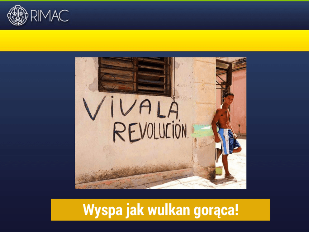 Wyspa jak wulkan gorąca! Przelot na Karaiby 10:45 Spotkanie na lotnisku i przekazanie niezbędnych materiałów i informacji. 12:45 – 15:10 Przelot do Paryża. 16:35 – 20:25 Przelot do Havany. Prywatny transfer do prywatnego apartamentu w centrum Havany. Kolacja w okolicznej restauracji we własnym zakresie. Gorąca Havana! Havana stolica Karaibów! Dwa dni z polskim przewodnikiem w Havanie. Jedno z najpiękniejszych miast Ameryki Łacińskiej. Kolonialny klimat. Auta z lat 60tych. Brukowane ulice, majestatyczne place oraz… wspaniali ludzie. Opcje za dnia: zwiedzanie Starówki (UNESCO), wizyta w barze Hemingwaya, obiad z koncertem na tarasie zabytkowej restauracji, wizyta w fabryce cygar, wizyta w Białym Domu i Muzeum Rewolucji, targ miejski. Zwiedzenie z polskim przewodnikiem i transportem zabytkowym autem (bez biletów wstępu). Hawana Nocą – opcje dodatkowe Szalona noc w Państwowej Salsotece! Show w słynnej Tropicana. Przejazd zabytkowym autem z lat 60tych. Zakwaterowanie w Hawanie Mieszkania w centrum Hawany lub na obrzeżach. Apartamenty w nowym budownictwie, mieszkania w kolonialnej zabudowie lub prywatne wille. Codziennie serwis sprzątający, pyszne śniadania przygotowane przez miejscowe babcie. Wybierz swój wymarzony dom w Hawanie i poznaj życie na Kubie od środka! Zakwaterowanie w Hawanie Relaks w rytmie salsy Varadero – Najsłynniejszy Kubański Kurort Przejazd do najsłynniejszego kurortu na Cubie – Vardadero. Zakwaterowanie w hotelu Iberostar Laguna Azul All Inclusive *****. Na miejscu pełne wyżywienie i napoje. Co wieczór show oraz dyskoteka. Powrót do Polski Śniadanie w hotelu. Czas wolny na korzystanie z infrastruktury hotelowej. Transfer do Hawany. 17:30 – 8:35 (+1) Przelot do Paryża. 9:40 – 11:55 Przelot z Paryża do Warszawy (+1) Varadero – Tropikalny raj Wycieczki fakultatywne Farma krokodyli i Zatoka Świń Podczas tej wycieczki odwiedzicie farmę krokodyli w La Boca na Półwyspie Cienega de Zapata, wykąpiecie się w Morzu Karaibskim, w Zatoce Świń - Playa Larga, gdzie istnieje także możliwość nurkowania. Podczas wycieczki lunch. Rejs lodziami motorowymi Laguna Skarbow na Wyspę z repliką wioski indinskiej z pokazem rdzennych mieszkancow Kuby - Indian Tainos. Powrót do Varadero ok. godz. 17:00. Wycieczki dodatkowe Na wodzie, pod wodą i na lądzie Samochodowe safari bezdrożami prowincji Matanzas z wizytą w jaskini Saturno (możliwość nurkowania). Rejs szybkimi łodziami rzeką Canimar oraz wizyta na Rancho Gaviota z welcome drinkiem oraz typowym kubańskim obiadem. W programie takze snorkling oraz przejazd przez miasto Matanzas. Niesamowity dzień pełen atrakcji! Wycieczki dodatkowe Rajs na rajską plażę Rejs katamaranem po Oceanie Atlantyckim z Varadero na wyspę Cayo Blanco z wizytą w delfinarium, nurkowaniem przy rafie koralowej, obiadem z langustą, plażowaniem i pływaniem na otwartym oceanie w drodze powrotnej. Na katamaranie i na wyspie open bar. Wycieczki dodatkowe Pływanie z delfinami Rejs katamranem w godz. 9-13 z wizytą w delfinarium na Oceanie. Pływanie z delfinami w czasie rejsu na katamaranie open bar. Wycieczki dodatkowe Samolotem na bezludną wyspę Romantyczny rejs małym katamaranem wśród wysepek morza Karaibskiego z wcześniejszym dolotem avionetką na jedna z nich Cayo Largo (lot z Varadero lub Havany). W cenie wycieczki lunch. Wycieczki dodatkowe Lazurowe emocje! 2-godzinna przejażdżka skuterem wodnym lub motorówką. Wycieczki dodatkowe Śladami Hemingway’a na morzu 5-godzinna wyprawa na ryby nowoczesną łodzią z 4 stanowiskami wędkarskimi. Wycieczki dodatkowe Perła Tropików Przejazd do Trynidadu, najpiękniejszego kolonialnego miasta Karaibów. Oryginalna architektura wpisana na listę UNESCO. Po drodze możliwość odwiedzania mauzoleum Che Guevary w Santa Clara. Wycieczki dodatkowe Program przygotowany przez RIMAC ul. Sokratesa 13, 01-909 Warszawa NIP: 865-210-49-71 Tel. +48 510-645-115 mail: [email protected] www.rimac.com.pl Specjalizujemy się w przygotowaniu wyjazdów do Ameryki Łacińskiej. Zapewniamy pełną obsługę. Rezerwacja hoteli. Przewodnicy lokalni. Indywidualne programy. Prywatne świadczenia. Sprawdzone lokalizacje. Program stanowi własność autorską Paweł Hammer RIMAC.