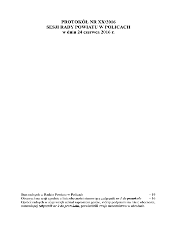 PROTOKÓŁ NR XX/2016 SESJI RADY POWIATU W POLICACH w