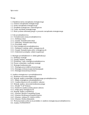 Spis treści Wstęp 1. Charakterystyka zarządzania strategicznego 1.1