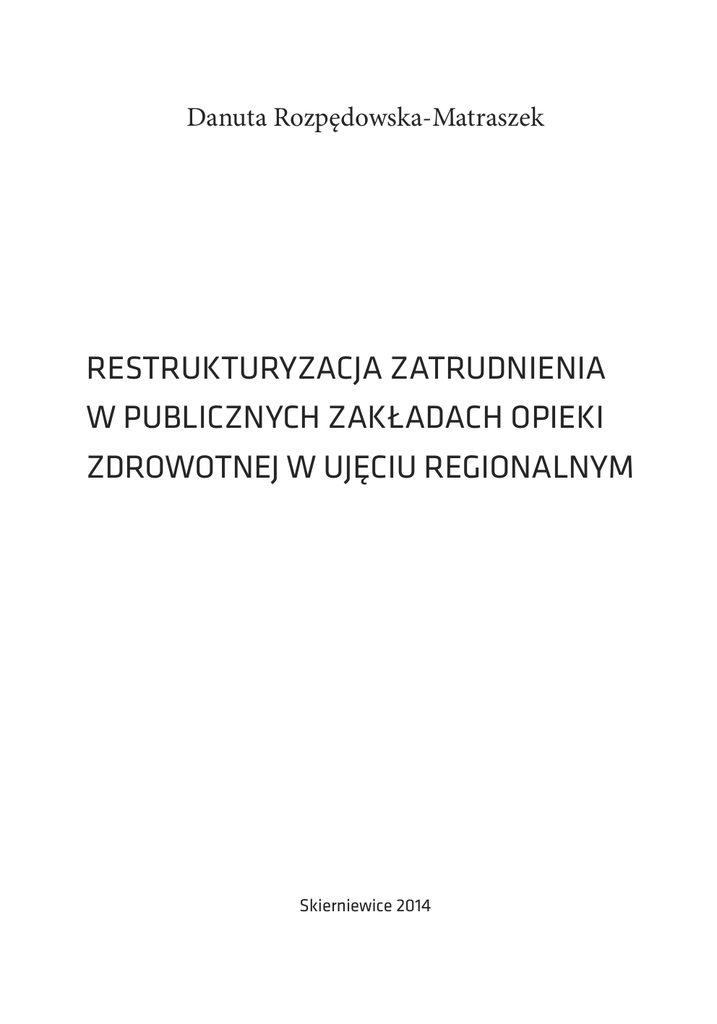 Danuta Rozpędowska-Matraszek RESTRUKTURYZACJA ZATRUDNIENIA W PUBLICZNYCH ZAKŁADACH OPIEKI ZDROWOTNEJ W UJĘCIU REGIONALNYM Skierniewice 2014 6SLVWUHĤFL ͷ ÏͳǤ ͻ ͳǤ Ï Ñ ϐ ͻ ʹǤ ͳ ʹǤͳǤÏ ͳͺ ʹǤʹǤ × Ǧ ʹͳ ÏʹǤ ͷͲ ͳǤÏѸ ʹǤÏѸ ͵Ǥ ͷͲ ͷͻ ͷ Ï͵Ǥ Ǧ Ǧ ¸©Ï× ͳǤÏĂ ʹǤ ͵Ǥ×Ă ×× ͺͳ ͺʹ ÏͶǤ ×Ï× ͻʹ ͳǤ ×ÏÏͷ ͻʹ ʹǤ Ï× ͳͲͲ ÏͷǤ × ͳͲ ͳǤ ä ͳͻͻͻȂʹͲͲͻ ͳͲ Ͷ ʹǤ Ǧ ʹͲͲ͵ȂʹͲͲͻ ͳͳͶ ͵Ǥ Ǧ Ǧ ʹͲͲ͵ȂʹͲͲͻ ͳͳͻ ÏǤ × ͳʹ ͳǤ ʹͲͲǦʹͲͲͻ ͳʹ ʹǤ Ǧ ʹͲͲǦʹͲͲͻ ͳ͵ʹ ÏǤ ͳ͵ͺ ͳǤ ¸ ʹͲͲͶǦʹͲͲͻ ͳ͵ͻ ʹǤ Ǧ ʹͲͲͶǦʹͲͲͻ ͳͶͶ Ñ ͳͷͳ Ñ ͳͷ ϐ ͳͻ
