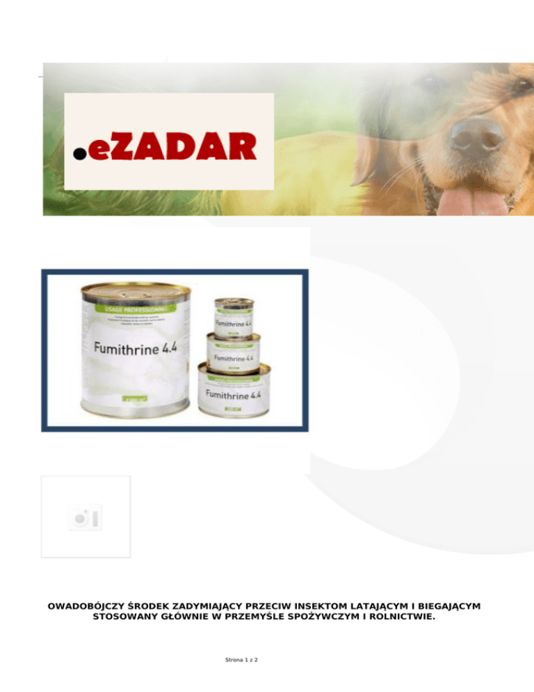 OWADOBÓJCZY ŚRODEK ZADYMIAJĄCY PRZECIW INSEKTOM LATAJĄCYM I BIEGAJĄCYM STOSOWANY GŁÓWNIE W PRZEMYŚLE SPOŻYWCZYM I ROLNICTWIE. Strona 1 z 2 Dym przenika przez najmniejsze szczeliny, daje możliwość dezynsekcji trudno dostępnych miejsc, doskonale penetruje całą przestrzeń. Przeznaczony do dezynfekcji w pustych halach magazynowych, w przemyśle spożywczym i w pustych pomieszczeniach, rolniczych gospodarstwach hodowlanych. PRAKTYCZNY I WYDAJNY Nie wymaga żadnych urządzeń szybki przepływ Niska cena w stosunku do wysokiej jakości Wcześniej dostosowana liczba puszek do bezpośredniego użycia BEZPIECZNY Niekonieczna obecność pracowników Nie powoduje korozji ZALECENIA 3 do 4 razy w odstępie tygodnia, w celu zabicia kolejnych generacji robactwa ( karaluch niemiecki, omocnica spichrzanka, kapturnik zbożowiec, skórnik kolczatek, wołek zbożowy, mucha domowa), które dopiero wykluwają się z larw i jaj. opakowania: 100 m3, 250m3, 500m3, 2000m3 ŚRODKI BEZPIECZEŃSTWA Nie spożywać Nie wdychać dymu Szkodliwe dla zdrowia przy niewłaściwym stosowaniu Strona 2 z 2