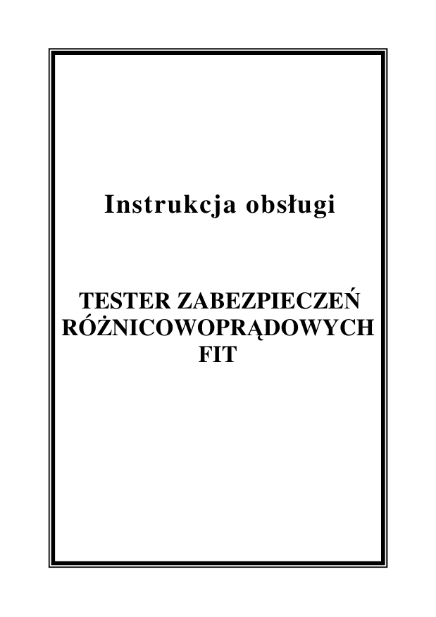 Instrukcja obsługi TESTER ZABEZPIECZEŃ RÓŻNICOWOPRĄDOWYCH FIT SPIS TREŚCI 1. WSTĘP 3 2. ZASADY BEZPIECZNEGO UŻYTKOWANIA 3 3. SYMBOLE UŻYTE NA PRZYRZĄDZIE 5 4. CHARAKTERYSTYKA PRZYRZĄDU 6 5. ZASTOSOWANIE 6 6. DANE TECHNICZNE 6 7. WARUNKI EKSPLOATACJI 7 8. OBSŁUGA 7 9. WYPOSAŻENIE 11 2 1. WSTĘP Wszyscy wiemy, że z prądem należy postępować ostrożnie, zaś instalacje elektryczne wymagają zastosowania pewnych urządzeń, które zabezpieczają cały układ elektryczny i jego użytkowników, przed skutkami awarii i uszkodzeń. W nowych instalacjach musi być zastosowana ochrona przed porażeniem. Do tego celu służą wyłączniki różnicowoprądowe. Ich przeznaczeniem jest zabezpieczenie przed porażeniem prądem, stanowiąc drugi stopień ochrony przeciwporażeniowej (pierwszym jest izolacja przewodów). Zadaniem wyłącznika jest szybkie odłączenie od zasilania, chronionej instalacji lub jej wydzielonego fragmentu (obwodu), kiedy pojawia się w nim tzw. prąd różnicowy. W celu sprawdzenia poprawności funkcjonowania zabezpieczeń różnicowoprądowych oraz sieci jedno- i trójfazowych, w których te zabezpieczenia zainstalowano, służy tester typu FIT. Dzięki prostej i bezpiecznej obsłudze, jest wysokiej jakości przyrządem. 2. ZASADY BEZPIECZNEGO UŻYTKOWANIA Przed przystąpieniem do korzystania z przyrządu, użytkownik MUSI przeczytać wszystkie ostrzeżenia i instrukcję obsługi. Ostrzeżenia i zapisy instrukcji, muszą być bezwzględnie przestrzegane podczas używania przyrządu. • Instrukcja obsługi obowiązuje tylko dla przyrządu, do którego została dołączona. • Inne zastosowanie przyrządu, niż podane w instrukcji może spowodować jego uszkodzenie lub być zagrożeniem dla użytkownika. • Osoba wykonująca pomiary powinna być odpowiednio wykwalifikowana. Użytkowanie przyrządu przez osoby 3 niewykwalifikowane, grozi jego uszkodzeniem lub może być źródłem niebezpieczeństwa dla zdrowia i życia ludzkiego. • Przyrząd powinien pracować w określonych warunkach eksploatacyjnych, patrz punkt 7. • Przyrząd oraz przewód i końcówki pomiarowe, nie mogą być użytkowane, jeżeli jakieś ich elementy są uszkodzone. • Przyrządu nie wolno stosować do sprawdzania sieci i urządzeń elektrycznych, w pomieszczeniach mających atmosferę o charakterze wybuchowym czy pożarowym. • Przyrządem nie wolno rzucać ani wstrząsać, gdyż może to doprowadzić do jego uszkodzenia. • Przyrządu nie wolno zanurzać w wodzie. • Nie wolno kłaść przyrządu na gorących powierzchniach. • Przyrząd nie może być pozostawiony bez dozoru, jeśli jest podłączony do badanego obwodu. • Osoba wykonująca pomiary, powinna posiadać całkowitą pewność, co do sprawności używanego przyrządu. • Nie należy dokonywać żadnych napraw przyrządu. • Naprawy serwisowe może wykonywać jedynie producent. 4 3. SYMBOLE UŻYTE NA PRZYRZĄDZIE -Oznaczenie CE symbolizuje zgodność wyrobu z regulacjami Unii Europejskiej, które mają do tego wyrobu zastosowanie. -Urządzenie chronione jest za pomocą izolacji podwójnej lub wzmocnionej. -Uwaga: Przyrząd posiada wytyczne obsługi i konserwacji, w postaci pisemnej bądź elektronicznej instrukcji, załączonej do egzemplarza urządzenia. Instrukcja musi być przeczytana przed rozpoczęciem użytkowania przyrządu! -To urządzenie jest oznaczone zgodnie z Dyrektywą Europejską 2002/96/WE oraz polską Ustawą o zużytym sprzęcie elektrycznym i elektronicznym symbolem przekreślonego kontenera na odpady. Takie oznakowanie informuje, że sprzęt ten, po okresie użytkowania nie może być umieszczany łącznie z innymi odpadami pochodzącymi z gospodarstwa domowego. Użytkownik zobowiązany jest do oddania go prowadzącym zbieranie zużytego sprzętu elektrycznego i elektronicznego. Prowadzący zbieranie, w tym lokalne punkty zbiórki, sklepy oraz gminne jednostki, tworzą odpowiedni system umożliwiający oddanie tego sprzętu. 5 4. CHARAKTERYSTYKA PRZYRZĄDU Cechy charakterystyczne przyrządu: - Sprawdzanie wyłączników jedną z 225 wartości prądu, z zakresu od 5mA do 1585mA. - Czas przepływu prądu 40, 150, 200 lub 500ms. - Możliwość sprawdzania wyłączników selektywnych. -Ergonomiczny kształt obudowy. 5. ZASTOSOWANIE Tester zabezpieczeń różnicowoprądowych FIT, przeznaczony jest do sprawdzania wyłączników różnicowoprądowych oraz sieci o napięciu fazowym 230V i częstotliwości 50Hz, jednolub trójfazowych, w których te zabezpieczenia zainstalowano. Umożliwia on sprawdzanie wyłączników wymuszonym prądem upływowym. 6. DANE TECHNICZNE - Znamionowe napięcie sieci 230V - Wymuszony prąd upływowy testu, wynikający z sumowania wartości załączanych przełącznikami 5, 10, 20, 50, 100, 200, 500, 700mA - Dokładność prądu przy znamionowym napięciu sieci ±2% - Czas testu 40, 150, 200, 500ms - Dokładność czasu testu ±5% - Automatyczne powtarzanie testu co 5s dla czasów 40, 150 i 200ms co 12,5s dla czasu 500ms 6 - Sygnalizacja podłączenia testera do napięcia fazowego, za pomocą diody LED oznakowanej L-PE - Sygnalizacja przepływu prądu testującego, za pomocą diody LED oznakowanej TEST - Napięcie probiercze izolacji - Wymiary gabarytowe (szer. x dł. x wys.) - Masa przyrządu 3kV 62 x 245 x 43mm ok. 250g 7.WARUNKI EKSPLOATACJI - Temperatura otoczenia - Wilgotność względna powietrza - Pozycja pracy 0...23...30°C 20..40..70..80% dowolna 8. OBSŁUGA Przed przystąpieniem do testowania instalacji, należy sprawdzić napięcie w sieci. UWAGA! Podłączenie testera do napięcia międzyfazowego 400V, może spowodować jego uszkodzenie. Należy, zapoznać się z parametrami elektrycznymi wyłącznika lub przekaźnika różnicowoprądowego, zainstalowanego w testowanej instalacji. Parametry te, determinują odpowiednie nastawy prądu testującego oraz jego czas przepływu. Na rys.1. i rys.2., przedstawiono charakterystyki zależności czasu od krotności zna