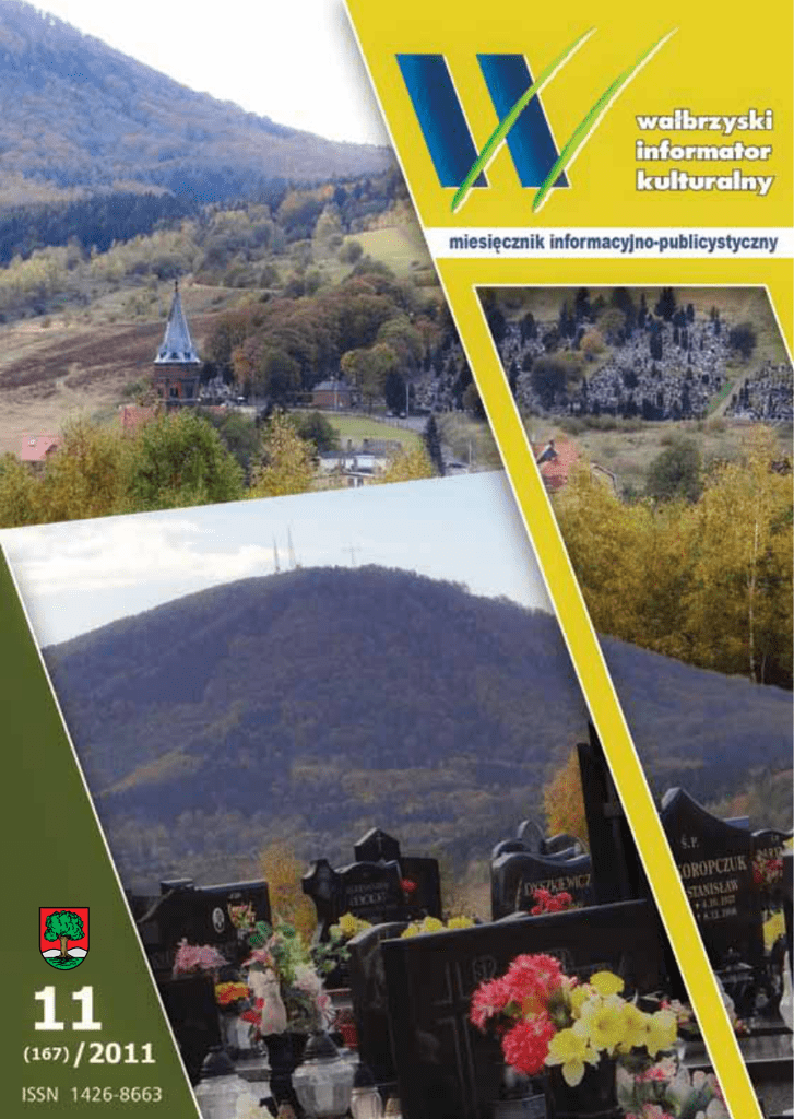 PREZYDENT MIASTA WAŁBRZYCHA ZAPRASZA NA UROCZYSTE OBCHODY 93 ROCZNICY ODZYSKANIA NIEPODLEGŁOŚCI 11.11.2011 r. 10 30 Zbiórka uczestników i pocztów sztandarowych na Placu Magistrackim 10 40 Przemarsz ulicami: Gdańską, Rynek, Moniuszki do kościoła pw. Św. Aniołów Stróżów 11 00 Uroczysta Msza Święta, kościół pw. Św. Aniołów Stróżów 12 30 Przemarsz na Plac Kościelny, uroczyste złożenie kwiatów pod Pomnikiem Niepodległości 13 30 RYNEK: Festyn: „CIESZMY SIĘ WOLNOŚCIĄ”: POLONEZ – wspólny taniec; ŻYWA FLAGA – pamiątkowe zdjęcie; dla każdego BEZPŁATNE FLAGI NARODOWE, ciepły posiłek … i wiele innych atrakcji! 15 00 Aula PWSZ: „Zespół Pieśni i Tańca „Wałbrzych” - program narodowy Imprezy towarzyszące: WAŁBRZYSKI KLUB BIEGACZA - Podzamcze 12 30 XII Cross Niepodległości II FESTYN „II LO DLA WAŁBRZYSZAN”: 16 00–18 00 17 00–18 00 18 15 19 00 Zwiedzanie trasy turystycznej musical METRO pokaz sztucznych ogni Filharmonia Sudecka, Koncert z okazji Święta Niepodległości, Teatr Zdrojowy w Szczawnie Zdroju Witam Państwa w przedostatnim już w tym roku numerze WIK-u. Mimo że to późna jesień i nieodległy czas przygotowań do Świąt, to wałbrzyska kultura nie zwalnia tempa. Czeka nas w listopadzie wiele znakomitych zdarzeń. Teatr Dramatyczny zaprosi na kolejne, wielkie spotkania z polskimi teatrami, czyli na „Fanaberie”. W Teatrze Lalki i Aktora, wzbogaconym o Scenę na Poduszkach dla najmłodszych, odbędzie się prapremiera polska pastorałki, która powstaje w koprodukcji z Theater Des Lachens z Frankfurtu nad Odrą oraz Stowarzyszeniem Teatr Fabryka Formy z Wrocławia. W BWA będziemy mogli obejrzeć wystawę obrazów Ferdynanda Drabika, który zapisał się trwale w historii Wałbrzycha głównie w dziedzinie kultury i turystyki oraz ekspozycję artystów z całego kraju – Forum Malarstwa Polskiego. Nie zabraknie nowych wystaw (ani innych, ciekawych propozycji) w Bibliotece pod Atlantami. Interesująco zapowida się listopad w Filharmonii m.in. z nocnym Koncertem Zaduszkowym. Wiele i dobrze będzie się działo w Wałbrzyskim Ośrodku Kultury, w Muzeum, czy innych miejscach znanych w naszym mieście z ciekawych propozycji. Trudno je tutaj wymienić, ale znajdziecie Państwo zapowiedzi działań kulturalnych w szerokm wyborze na stronach naszego miesięcznika. Polecamy też prezentacje twórców wałbrzyskich i ilustrowany materiał o dawnym Wałbrzychu, tym razem poświęcony pomnikom z tamtych czasów. W listopadowym WIK-u gości też wicemarszałek województwa dolnośląskiego, Radosław Mołoń, który mówi o wałbrzyskiej kulturze. Życzę miłej lektury Elżbieta Maria Kokowska redaktor naczelny Festiwal Artystyczno-Literacki preTEXTY 2 Ludzie współczesnego Wałbrzycha 3 ... życzę śmiałych pomysłów, zapału, wytrwałości w podejmowaniu inicjaty w kulturalnych... wywiad z Radosławem Mołoniem, Wicemarszałkiem Województwa Dolnośląskiego 4 Teatr Lalki i Aktora 6 Teatr Dramatyczny 8 WGS BWA „Zamek Książ” Filharmonia Sudecka 10 Muzeum w Wałbrzychu 14 Prezentacje: plastyka Barbara Mucha – Brodzińska 16 35 Międzynarodowe Sympozjum Ceramiki „Porcelana Inaczej” 18 Prezentacje: fotografia Norbert Wawrzyniak 20 Przedsiębiorstwo Zamek Książ 22 Galeria na Piętrze Autorska Galeria Rzeźby Marii Bor 22 Prezentacje: poezja Justyna Marta Bała 23 „Biblioteka pod Atlantami” Wałbrzyski Ośrodek Kultury 24 Muzeum Gross-Rosen 28 Park Wielokulturowy Stara Kopalnia 28 12 26 Kalendarium29 Ośrodek Społeczno – Kulturalny na Podzamczu 31 Wędrowanie z WKW 31 Pomniki dawnego Wałbrzycha 32 Nasi parlamentarzyści 34 Kalejdoskop34 Wałbrzyski Informator Kulturalny listopad 2011 1 Festiwal Artystyczno-Literacki „preTEXTY” Jelenia Góra, Wałbrzych, Wołów 2011 To druga edycja dolnośląskiego festiwalu organizowanego przez Fundację na Rzecz Kultury i Edukacji im. Tymoteusza Karpowicza. Idea stworzenia objazdowej dolnośląskiej imprezy literacko-artystycznej powstała w wyniku refleksji nad wyraźną w ostatnich latach tendencją do centralizacji życia kulturalnego; przechwytywanie kolejnych wartościowych lokalnych projektów artystycznych przez miasta takie jak Wrocław, co w połączeniu z ogólnie mniejszymi możliwościami ośrodków regionalnych, skutkuje ich coraz większym odcięciem od najbardziej żywotnego nurtu kultury współczesnej. Ponowne zasiedlenie owych zastanych pustostanów, wciągnięcie odbiorców w żywy i twórczy kontakt z młodą literaturą, także przez jej integrację z innymi dziedzinami działalności artystycznej (muzyki, multimediów), oraz, przede wszystkim, ożywienie struktur lokalnych – takie cele postawili- 4 - 5 - 6 listopada śmy przed festiwalem. Tegoroczny program koncentruje się głównie na prezentacjach twórczości wrocławskich i dolnośląskich autorów młodego i średniego pokolenia. Na spotkaniach będą czytane wiersze. Dlaczego? Bo w jej otwartości na jak największą różnorodność języków widać szansę na spotkanie odmiennych doświadczeń. 5. 11 Wałbrzych Klub A' PROPOS godz. 18 – spotkania autorskie Rafał Kwiatkowski - „Twarde O” Piotr Makowski - „ Soundtrack” godz. 19 – spotkanie autorskie Konrad Góra „Pokój widzeń” godz. 19:30 spotkanie autorskie Jacek Bierut - „Frak człowieka” godz. 20 - spotkanie autorskie Karol Maliszewski - „Ody odbite” godz. 20:45 The Battle of 7 Words Wałbrzych 2011 Turniej literacki łączący elementy Slam Poetry i Creative Writing. Zawodnicy rywalizują ze sobą w parach, wygrani z każdej przechodzą do finału. Zwycięzca (decydują głosy publiczności) wygrywa nagrody pieniężne. godz. 21:30 The Chain Smokers & Edward Pasewicz Projekt muzyczno - literacki, oparty na połączeniu muzyki improwizowanej i polskiej poezji współczesnej. Koncerty mają charakter jednorazowego wydarzenia. 4.11 Jelenia Góra Książnica Karkonoska 6.11 Wołów Pub Stary Gramofon, Wo
