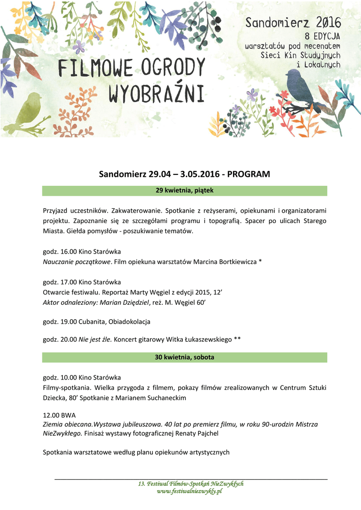 Program warsztatów 2016 - Festiwal Filmów NieZwykłych