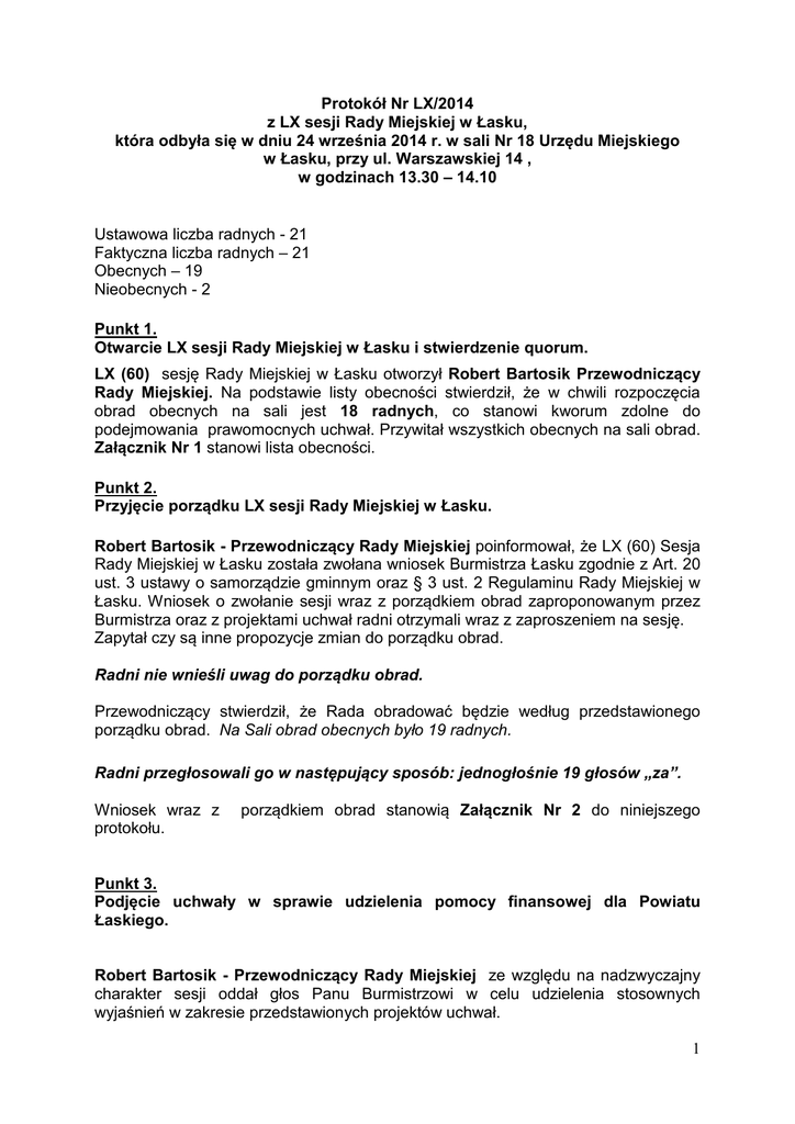 1 Protokół Nr LX/2014 z LX sesji Rady Miejskiej w Łasku, która