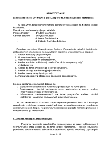 SPRAWOZDANIE za rok akademicki 2014/2015 z prac Zespołu ds