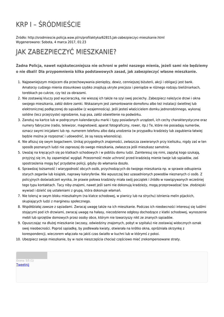 KRP I – ŚRÓDMIEŚCIE JAK ZABEZPIECZYĆ MIESZKANIE?