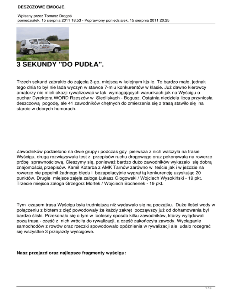 eliminacji Samochodowych Zawodów Klubowych 2011 na trasie w Ropczycach.
