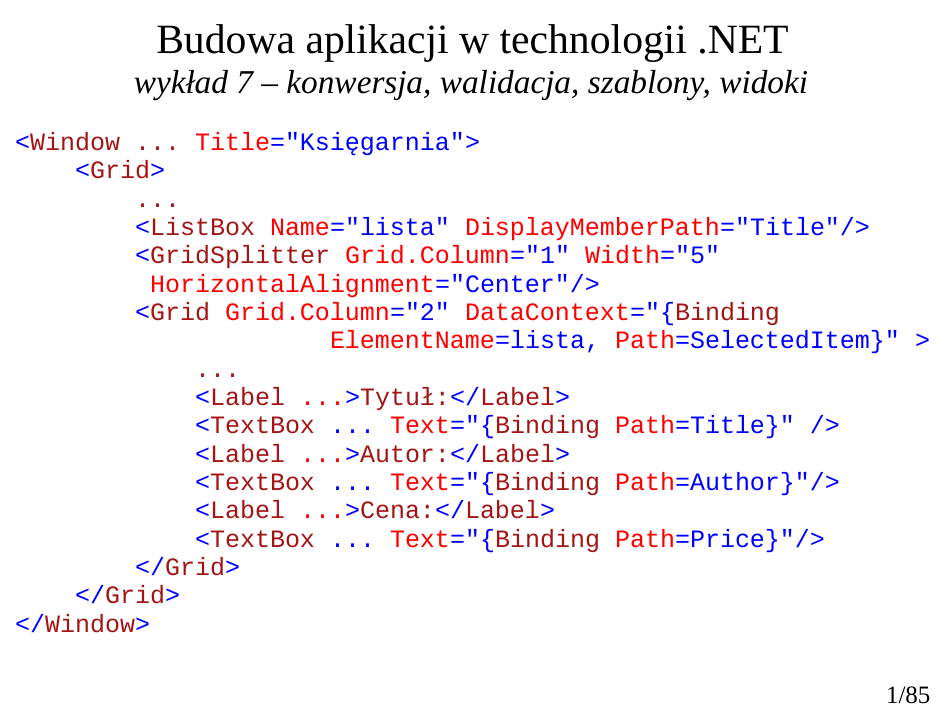 <Window ... Title="Księgarnia">