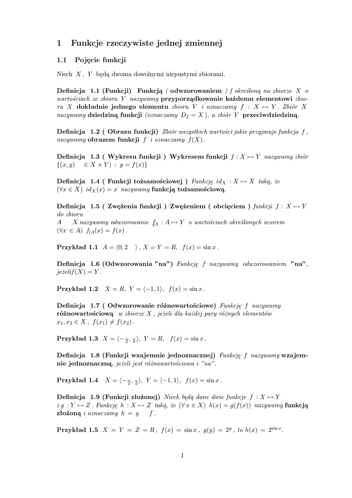 1 Funkcje rzeczywiste jednej zmiennej