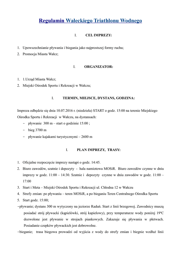 regulamin triathlon - Urząd Miasta Wałcz