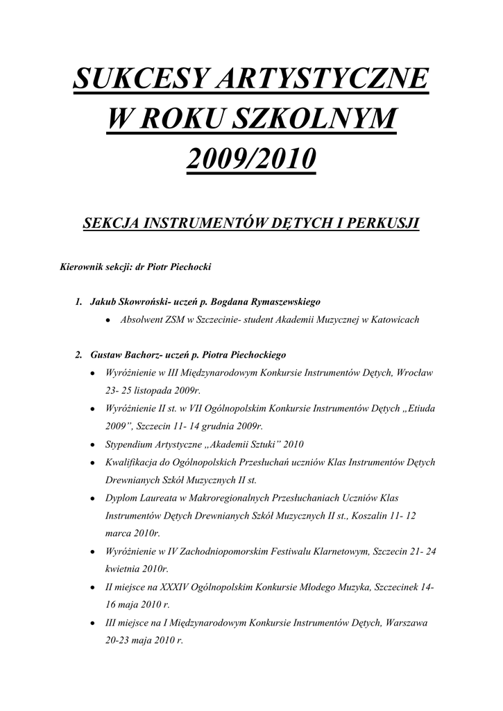 sukcesy artystyczne - Zespół Szkół Muzycznych w Szczecinie