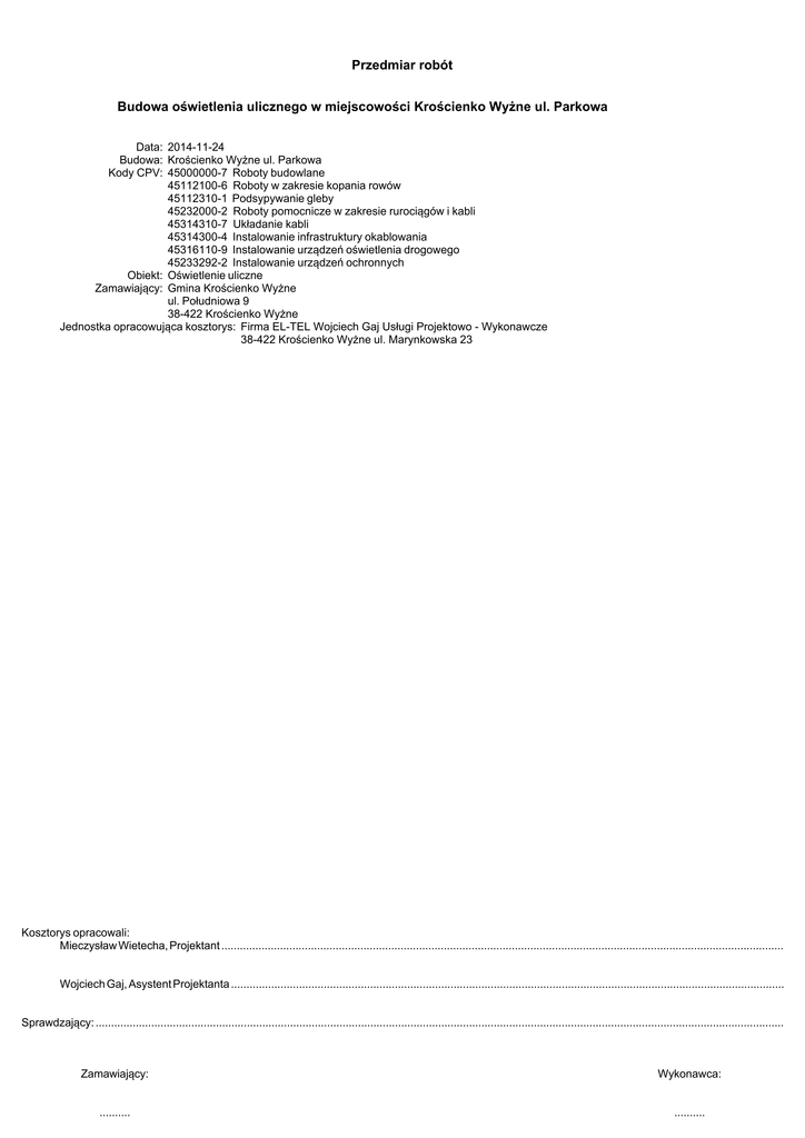 Przedmiar robót Budowa oświetlenia ulicznego w miejscowości