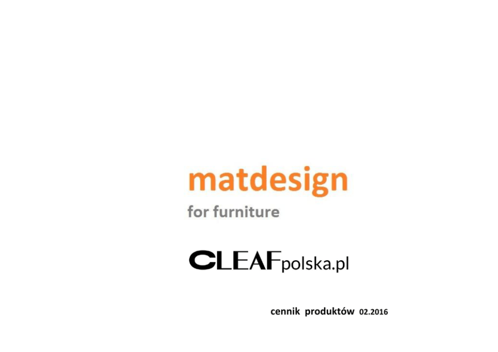 cennik produktów 02.2016 Zamówienia: Dostawa towaru: Zamówienia proszę wysyład na adres [email protected] Towar dostarczany jest spedycją, transportem dedykowanym, kurierem lub przy pomocy innych firm zewnętrznych. Zamówienia na fronty (TSS Cleaf i Akrylowe) proszę składad na formularzach dostępnych na stronie internetowej Zamówienia płyt nie wymagają formularza. Przy odbiorze towaru wymagane jest dokładne sprawdzenie zgodności z zamówieniem oraz stanu przesyłki i potwierdzenie odbioru podpisem. W zamówieniu proszę podad dane do faktury, tel. kontaktowy oraz adres dostawy. Towar należy zawsze odebrad od kuriera / przewoźnika. Ewentualne braki czy uszkodzenia należy opisad na dokumencie dostawy. Nieodebranie towaru nawet uszkodzonego skutkuje poniesieniem przez zamawiającego wszelkich dodatkowych kosztów transportu, magazynowania itp. Wszelkie uszkodzenia trzeba zgłaszad kierowcy / kurierowi oraz należy opisad uszkodzenia na dokumencie WZ czy innym dokumencie przewozowym. Realizacja zamówieo i płatnośd: Po otrzymaniu zamówienia BIURO wystawi fakturę proforma, po dokonaniu wpłaty proszę przysład potwierdzenie. Po otrzymaniu potwierdzenia wpłaty BIURO zleca produkcję / wysyłkę towaru lub awizację na odbiór własny. Zamówienia na towary ze stanu magazynowego realizowane są w ciągu 3 - 4 dni. Termin realizacji frontów jest zgodny z cennikiem. Towary wymagające zamówienia w fabryce - konieczna jest wpłata w wysokości 35% wartości zamówienia i pozostałe 65% przed dostawą. Wszelkie braki muszą byd zaznaczone i opisane na dokumencie WZ czy innym dokumencie przewozowym. Warunkiem rozpatrzenia jakiejkolwiek reklamacji jest podpis kierowcy / kuriera / przewoźnika na dokumecie dostawy. Brak podpisu kierowcy / kuriera podczas zgłoszenia niezgodności z dostawą czy uszkodzenia przesyłki traktowany jest jako dostawa pełnowartościowa. Brak adnotacji o jakiejkowiek niezgodności z zamówieniem czy uszkodzeniu towaru traktowany jest jako dostawa pełnowartościowa. Wszystkie reklamacje będą wyjaśniane niezwłocznie pomiędzy zamawiającym a Matdesign. KOSZTY TRANSPORTU - dotyczą wszystkich produktów z cennika, ceny netto Produkty o formatach innych niż wymienione poniżej wymagają indywidualnego określenia kosztów transportu Transport taki realizowany jest przy pomocy zewnętrznych firm spedycyjnych i w przyadku dostawy bezpośredniej trwa zwykle około 3 - 4 dni roboczych W przypadku transportów łączonych do kilku klientów (celem obniżenia kosztów) czas dostawy może byd dłuższy i wymaga osobnych ustaleo struktura Płyty TSS Cleaf 2800 x 2070 x 18mm nr dekoru zł/m2 cena za płytę ABS 22/1 ABS 40/1 *zł/mb+ *zł/mb+ front prosty front ramiakowy * *zł/m2+ *zł/m2+ * zobacz str 5 Aldany FB04 125,00 725,000 3,00 5,50 270,00 380,00 Azimut S028 110,00 638,00 3,00 5,50 260,00 380,00 Ares FB43, FB48, FB49 U129 105,00 609,00 3,00 5,50 250,00 380,00 Engadina S061, S063, S065 UA94 105,00 609,00 3,00 5,50 250,00 380,00 Millenium FA42, FA68, FA80 S081 105,00 609,00 3,00 5,50 250,00 380,00 ceny netto w zł strona 2 struktura Płyty TSS Cleaf 2800 x 2070 x 18mm nr dekoru zł/m2 cena za płytę ABS 22/1 ABS 40/1 *zł/mb+ *zł/mb+ front prosty front ramiakowy * *zł/m2+ *zł/m2+ * zobacz str 5 Nadir FA89, LN03 90,00 522,00 3,00 5,50 240,00 380,00 Penelope FA42, FA44, FA64 FA67, UA41, UA83 UA84, UA88, UA171 80,00 464,00 3,00 5,50 240,00 380,00 Pembroke S121, S129 110,00 638,000 3,00 5,50 260,00 380,00 Primo Fiore FA68, FA84 FB 12, FB20 90,00 522,00 3,00 5,50 240,00 380,00 Sable LR25, LR27, LR28 110,00 638,00 3,00 5,50 260,00 380,00 ceny netto w zł strona 3 struktura Płyty TSS Cleaf 2800 x 2070 x 18mm nr dekoru zł/m2 cena za płytę ABS 22/1 ABS 40/1 *zł/mb+ *zł/mb+ front prosty front ramiakowy * *zł/m2+ *zł/m2+ * zobacz str 5 Sherwood B011, S072, S073 S079 105,00 609,00 3,00 5,50 250,00 380,00 Spigato FA92 85,00 493,00 3,00 5,50 240,00 380,00 Tranche LM09, LM12 90,00 522,00 3,00 5,50 240,00 380,00 Yosemite S010 105,00 609,00 3,00 5,50 250,00 380,00 ceny netto w zł strona 4 Płyty TSS Cleaf formatki, fronty proste i ramiakowe - pozostałe usługi i informacje UWAGA - fronty ramiakowe wykonujemy w dwóch wersjach: KLASYCZNA - z płyty 8 i 18mm NOWOCZESNA - tylko z płyty 18mm 3 elenentowy 5 elementowy dopłaty do formatek i frontów prostych: - cięcie całej płyty na formatki, odpad zabiera klient cena płyty plus usługa cięcia - usługa obrzeżowania pociętych formatek - pakowanie formatek na paletę euro, w tym cena palety - fronty proste z ciągłością rysunku drewna lub struktury np. sherwood, pembroke, millenium itp. - fronty 36mm - 2,00 zł/mb cięcia - 2,50 zł/mb oklejania - 60,00 zł/paleta - dopłata 100% do ceny frontu - cena frontu 18mm x 2 + dopłata 60,00 zł/m2 dopłaty do frontów ramiakowych: - front o wymiarze powyżej 1000mm powinien posiadad dodatkowy ramiak - witryna czyli front bez płyciny z miejscem na szybę i uszczelkę, oraz z uszczelką - wypełnienie z płyty innej niż ramiak w zakresie posiadanych ceny netto w zł - dopłata 30% do ceny frontu - dopłata 50,00 zł do ceny frontu - dopłata 15% do ceny frontu UWAGA - ceny za usługi nie podlegaja rabatowaniu. strona 5 Nowość !!! front prosty Fronty akrylowe Preforming Bianco Magnolia Moro *zł/m2+ Fronty z preformingiem wykonane z utwardzonego akrylu nie wymagającego sezonowania, są gotowego do użytkowania od razu po zdjęciu folii ochronnej. Produkowane na bazie płyty mdf plus o grubości nominalnej 18mm jednostronnie laminowanej białej. Na dwóch bokach akryl jest zagięty o 90° tzw. preforming. To unikalna technologia nie stosowana dotąd w Polsce przy produkcji frontów. Doskonały wygląd czy walory estetyczne nieosiągalne dla innych frontów dają wygodę i pewnośd użytkowania. Pozostałe dwa boki są oklejone w technologii Laser. Całośd wygląda perfekcyjnie i jest odporna na działanie wilgoci. Takie wykonanie to przełom w produkc