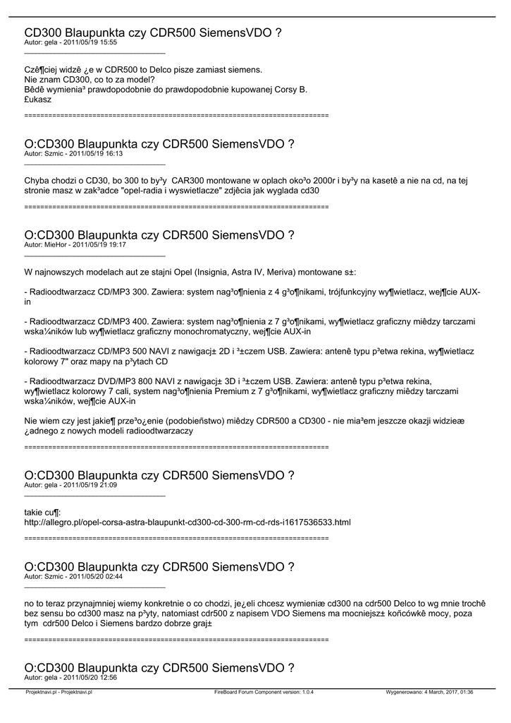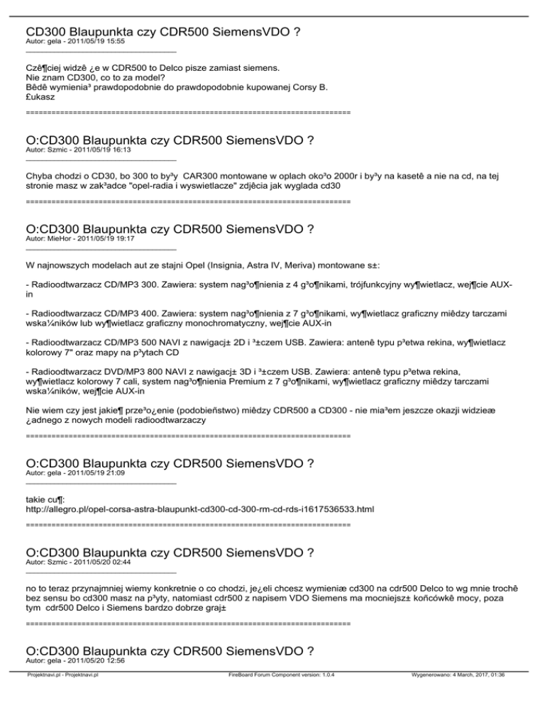 O:CD300 Blaupunkta czy CDR500 SiemensVDO