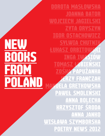 NEW BOOKS FROM POLAND THE POLISH BOOK INSTITUTE The Polish Book Institute is a national cultural institution. We were established by the Ministry of Culture to promote Polish literature worldwide and to popularise books and reading within the country. We try to do everything we can: we inform, encourage and convince translators of Polish literature to translate Polish books, foreign publishers to publish their translations, and the organisers of all sorts of literary events the world over to invite Polish authors to take part in them. And when they are prepared to do so, we help them to make it happen. Thanks to the financial support which we provide through the ©Poland Translation Programme, in recent years more than 1200 translations of Polish books have been published abroad, including works by Czesław Miłosz, Wisława Szymborska, Ryszard Kapuściński, Olga Tokarczuk, Andrzej Stasiuk, Andrzej Sapkowski, Marek Krajewski and many others. However, that is not all: the Biblioteka+ Programme, the strategic aim of which is to transform community libraries into modern centres of access to knowledge and culture, is our answer to the need for a radical improvement in the state of public libraries in Poland. For Poland’s libraries we have also developed the new MAK+ system for cataloguing their collections, enabling them to carry out all sorts of operations to do with cataloguing and lending. Finally, we have helped to establish Book Discussion Clubs all over Poland, and to date there are now 1000 of them! For the past seven years we have been administering the Ministry of Culture’s grant programmes in the sphere of literature, and since April 2010 we have also been the publisher of some of Poland’s oldest and most highly regarded cultural periodicals, including Nowe Książki (“New Books”), Twórczość (“Creativity”), Literatura na Świecie (“World Literature”), Dialog, Ruch Muzyczny (“Musical Movement”), and Odra. As well as that, we provide Poland’s biggest source of information on books and literature. On a daily basis our website, www.bookinstitute.pl, publishes the latest literary news from Poland and abroad, information about new and forthcoming books and regular reviews, as well as the biographical details of more than 150 Polish authors, information about more than 1 000 books published in recent years, extracts from them, critical essays, and the addresses of publishers and literary agents – all in Polish, English, German, Russian and Hebrew. SELECTED BOOK INSTITUTE PROGRAMMES ©POLAND TRANSLATION PROGRAMME The Programme was established in 1999 and was modelled on similar programmes in other countries. Its aim is to increase the number of foreign translations of Polish literature by providing financial support to foreign publishers to pay for translation costs. The Programme is administered by the Kraków-based Book Institute. Preference is given to works fiction and non-fiction that fall within the humanities category. The Programme may cover: • Up to 100 % of the costs of a translation from Polish into a foreign language • Up to 100 % of the costs of purchasing the publishing rights SAMPLE TRANSLATIONS ©POLAND Financing is given for 20 pages of a translation (1,800 characters per page). The translator submits an application, including: the motivation for choosing the applicable book, the plan of action, his/her bibliography, information concerning the translation costs. Full information on the ©POLAND Translation Programme and Sample Translations ©POLAND, including a list of grants awarded to date and a funding application form can be found on the Polish Book Institute’s website, www.bookinstitute.pl “KOLEGIUM TŁUMACZY” TRANSLATORS’ PROGRAMME Based in Kraków, this programme provides study visits for translators of Polish literature and is run jointly with the Jagiellonian University and the Villa Decius. During three- or one-month stays, the translators are provided with suitable conditions for their work and assistance with their translations. They also conduct some classes for students at the Jagiellonian University. Eight candidates are accepted each year, from March to May and from September to November. THE TRANSATLANTIC PRIZE The Transatlantic prize is awarded by the Polish Book Institute to outstanding ambassadors of Polish literature abroad. Its aim is to promote Polish literature on the world market and to provide a focal point for translators of Polish literature and its promoters (literary critics, scholars and organisers of cultural events). The prize is awarded annually and is worth € 10,000. The winner is chosen by a special committee including leading literary scholars, organisers of cultural events, translators and the head of the Book Institute. The winners from 2005 were Henryk Bereska, Anders Bodegård, Albrecht Lempp, Ksenia Starosielska, Biserka Rajčić, Pietro Marchesani, Vlasta Dvořáčková and Yi Lijun. CONTACT: The Polish Book Institute ul. Szczepańska 1 PL 31-011 Kraków E-mail: [email protected] Phone: +48 12 433 70 40 Fax: +48 12 429 38 29 www.bookinstitute.pl Director of the Polish Book Institute: Grzegorz Gauden CONTENTS PAGE AUTHOR TITLE 8 10 12 14 16 18 20 22 24 26 28 30 32 34 36 38 40 42 44 DOROTA MASŁOWSKA JOANNA BATOR WOJCIECH JAGIELSKI ZYTA ORYSZYN IGOR OSTACHOWICZ SYLWIA CHUTNIK ŁUKASZ ORBITOWSKI INGA IWASIÓW TOMASZ ŁUBIEŃSKI ZOŚKA PAPUŻANKA JERZY FRANCZAK MANUELA GRETKOWSKA PAWEŁ SMOLEŃSKI ANNA BOLECKA KRZYSZTOF ŚRODA ANNA JANKO WISŁAWA SZYMBORSKA POETRY NEWS 2012 PUBLISHERS’ ADDRESSES Honey, I Killed the Cats Dark, Almost Night Scorching the Grass Saving Atlantis Night of the Living Jews Hustlers Phantoms For a Short Time The Shift A Domestic Charade NN The Agent An Arab Fires and a Jew Delights The Tzadik and the Girl Travels to Armenia and Other Lands The Passion According to Saint Hanka Enough FROM THE EDITOR If I had to define what’s different and special about the new lit