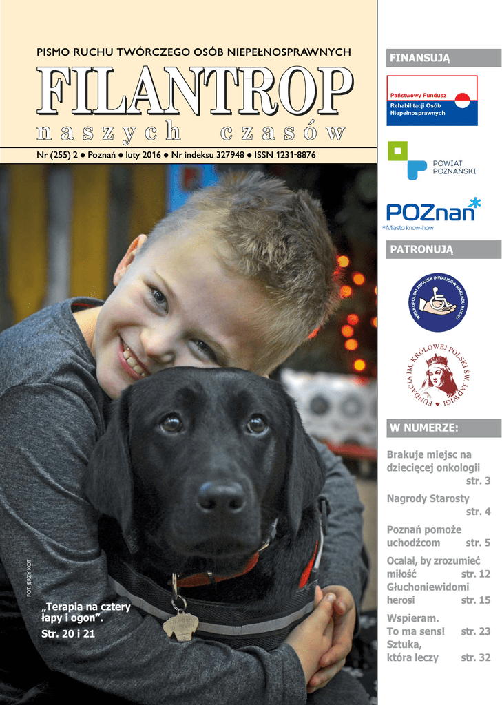PISMO RUCHU TWÓRCZEGO OSÓB NIEPEŁNOSPRAWNYCH FINANSUJĄ Nr (255) 2 Poznań luty 2016 Nr indeksu 327948 ISSN 1231-8876 PATRONUJĄ W NUMERZE: Brakuje miejsc na dziecięcej onkologii str. 3 Nagrody Starosty str. 4 FOT. JERZY KOT Poznań pomoże uchodźcom str. 5 „Terapia na cztery łapy i ogon”. Str. 20 i 21 Ocalał, by zrozumieć miłość str. 12 Głuchoniewidomi herosi str. 15 Wspieram. To ma sens! Sztuka, która leczy str. 23 str. 32 2 STRONA LUTY 2016 Wsparcie zimą W ielkopolskie noclegownie dysponują wolnymi miejscami dla osób bezdomnych. Pomoc w zapewnieniu dachu nad głową osobom bezdomnym świadczy 51 placówek. Są wśród nich między innymi noclegownie, hostele, ośrodki interwencji kryzysowej. Wsparcie oferują też punkty wydawania paczek żywnościowych, jadłodajnie i otwarte kuchnie. W samym Poznaniu działają 3 jadłodajnie Caritasu: przy ul. Ściegiennego, Taczaka i na osiedlu Bohaterów II Wojny Światowej. W Wielkopolskim Urzędzie Wojewódzkim prowadzony jest stały monitoring miejsc w ośrodkach pomocy dla osób bezdomnych. Pełen rejestr wszystkich ośrodków jest dostępny na stronie internetowej urzędu w zakładce „Akcja zima”. Na stronie internetowej dostępna jest też interaktywna mapa placówek wraz z niezbędnymi danymi kontaktowymi. W Poznaniu działa specjalna linia telefoniczna 19515, pod którą można uzyskać wszelkie informacje dotyczące miejsc noclegowych w Poznaniu. Bezdomni potrzebujący wsparcia mogą zgłaszać się do miejskich i gminnych ośrodków pomocy społecznej. Wojewoda wielkopolski Zbigniew Hoffmann apeluje, aby przekazywać służbom informacje o wszystkich osobach starszych, bezdomnych czy chorych, dla których niskie temperatury stanowią realne zagrożenie dla życia i zdrowia. Prawnicy pomogą O d stycznia działa w Wielkopolsce 138 punktów udzielania bezpłatnych porad prawnych. W całym kraju jest ich ponad 1,5 tysiąca. Pomoc w nich świadczą adwokaci i radcy prawni. Punkty finansowane są z budżetu państwa. W województwie wielkopolskim wojewoda Zbigniew Hoffmann przekaże powiatom na ten cel w ciągu roku 8,5 mln zł. Utworzenie punktów to rezultat wejścia w życie ustawy przygotowanej w Ministerstwie Sprawiedliwości. Zakłada ona stworzenie ogólnopolskiego systemu nieodpłatnej pomocy prawnej oraz edukacji prawnej. Projekty i kampanie edukacyjne realizowane będą przy współpracy z organizacjami pozarządowymi, uczelniami i samorządami zawodowymi. Dostęp do bezpłatnej pomocy prawnej na poziomie lokalnym ma umożliwić korzystanie z profesjonalnych usług prawnych osobom, których do tej pory nie było na to stać. Darmową pomoc prawną na etapie przedsądowym mogą otrzymać: młodzież do 26 roku życia, osoby, którym przyznane zostało świadczenie z pomocy społecznej na podstawie ustawy o pomocy społecznej, osoby, które ukończyły 65 lat, posiadacze ważnej Karty Dużej Rodziny, kombatanci i weterani, zagrożeni lub poszkodowani katastrofą naturalną, klęską żywiołową lub awarią techniczną. Pomoc prawna polega na: wyjaśnieniu obowiązującego stanu prawnego, poinformowaniu o przysługujących uprawnieniach lub obowiązkach, wskazaniu sposobu rozwiązania problemu prawnego, pomocy w sporządzeniu wymagającego wiedzy prawniczej projektu pisma (z wyłączeniem pism procesowych w postępowaniach przygotowawczym lub sądowym i pism w postępowaniu sądowo-administracyjnym), sporządzeniu projektu pisma o zwolnienie od kosztów sądowych lub o ustanowienie pełnomocnika z urzędu. Uprawnieni mogą uzyskać informacje w zakresie: prawa pracy, przygotowania do rozpoczęcia działalności gospodarczej, prawa cywilnego, spraw karnych, spraw administracyjnych, ubezpieczenia społecznego, spraw rodzinnych, prawa podatkowego z wy- łączeniem spraw podatkowych związanych z prowadzeniem działalności gospodarczej. Pomoc nie będzie natomiast obejmowała spraw z zakresu prawa celnego, dewizowego, handlowego i działalności gospodarczej, z wyjątkiem przygotowywania do jej rozpoczęcia. Darmowej pomocy prawnej udzielają adwokaci i radcowie prawni wskazani przez samorządy zawodowe. Zaplecze organizacyjne i techniczne zapewniają samorządy. Część punktów prowadzona jest przez organizacje pozarządowe, wybrane w konkursach. Tam pomocą służą także doradcy podatkowi oraz absolwenci wyższych studiów prawniczych z co najmniej trzyletnim doświadczeniem. Szczegółowe informacje o systemie dostępne są na stronie internetowej: https://darmowapomocprawna.ms.gov. pl/pl/ Mapa punktów udzielających pomocy prawnej: https:// d a r m ow a p o m o c p r aw n a . ms.gov.pl/pl/nieodplatna-pomoc-prawna/mapa-punktowpomocy/ TOMASZ STUBE TOMASZ STUBE EMILIA ANDRUSZKO-RATAJCZAK Drzewa Często maluję drzewa. Czuję, że są mi bliskie. Drzewa za oknem uczą mnie jak trwać. Mimo wszystko. 7ZyMSRGDWNX 7ZyMSRGDWNX CZERWONAK SRPRĪHQDPVNXWHF]QLHMZDOF]\üREH]ZDUXQNRZHX]QDQLH OXG]NLHMJRGQRĞFLRVyEQLHSHáQRVSUDZQ\FK LLFKZV]HFKVWURQQHMREHFQRĞFLZĪ\FLXVSRáHF]Q\P 7DNLMHVWFHORJyOQRSROVNLHJRPLHVLĊF]QLND Ä)LODQWURS1DV]\FK&]DVyZ´ :HVSU]HV]QDVZSLVXMąF.56 ]GRSLVNLHPÄQDFHOHVWDWXWRZH´ Z]H]QDQLXSRGDWNRZ\P]DURN STRONA LUTY 2016 3 Brakuje miejsc na dziecięcej onkologii linika Onkologii, Hematologii i Transplantologii Pediatrycznej Szpitala Klinicznego im. Karola Jonschera w Poznaniu to jedyny tego typu ośrodek w Poznaniu i Wielkopolsce. A ilość łóżek jest niewystarczająca. Dlatego w lutym 2013 roku decyzją Rektora Uniwersytetu Medycznego im. Karola Marcinkowskiego w Poznaniu przekazano klinice działkę, na której ma zostać wybudowane nowe skrzydło Szpitala Klinicznego im. Karola Jonschera dla Kliniki Onkologii, Hematologii i Transplantologii Pediatrycznej, a Stowarzyszenie Wspierania Rozwoju Transplantacji Szpiku u Dzieci sfinansowało opracowanie szczegółowego projektu architektoniczno-budowlanego oraz zabiega, przy wsparciu władz uczelni, o pieniądze na jego realizację. – Obecnie w klini