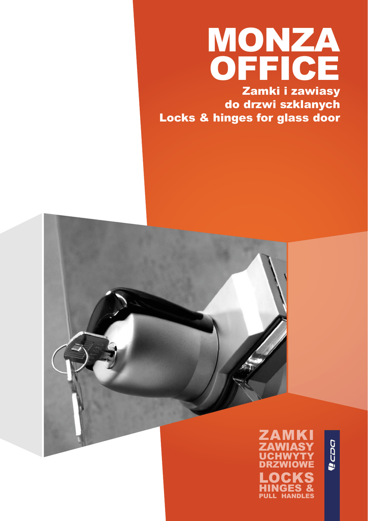 MONZA OFFICE Zamki i zawiasy do drzwi szklanych Locks & hinges for glass door ZAMKI ZAWIASY UCHWYTY DRZWIOWE LOCKS HINGES & PULL HANDLES MONZA OFFICE F11SET Zamek do drzwi z zewnętrznym i wewnętrznym przyciskiem otwierającym, bez blokady Lock for free passage (outside and inside push-buttons) 58 32-36 58 70 51 22 67 102 11 ∅46 69 Przygotowanie szkła Glass preparation Kod / Code Wykończenie / Finish F11SET PC F11SET MC chrom połysk / polished chrome materiał: stal/aluminium material: steel/aluminium chrom matowy / matt chrome grubość szkła (mm): 8; 10; 12 glass thickness (mm): 8; 10; 12 zawiera mechanizm do szkła FGLA FGLA mechanism for glass included F12SET Zamek do drzwi łazienkowych z wewnętrznym przyciskiem blokującym, zintegrowanym ze wskaźnikiem obłożenia wc Bathroom lock (with action button integrated with occupancy indicator) 58 32-36 58 ∅46 69 Przygotowanie szkła Glass preparation 2 70 51 22 67 102 11 Kod / Code Wykończenie / Finish F12SET PC F12SET MC chrom połysk / polished chrome materiał: stal/aluminium material: steel/aluminium chrom matowy / matt chrome grubość szkła (mm): 8; 10; 12 glass thickness (mm): 8; 10; 12 zawiera mechanizm do szkła FGLA FGLA mechanism for glass included z blokadą i możliwością awaryjnego otwarcia z zewnątrz lock with emergency opening from outside MONZA OFFICE І Zamki i zawiasy do drzwi szklanych І Locks & hinges for glass door 1 MONZA OFFICE F13SET Zamek do drzwi z kluczem od zewnątrz oraz przyciskiem blokującym od wewnątrz Lock with outside key and inside block button 58 32-36 70 58 51 22 67 102 11 ∅46 Kod / Code Wykończenie / Finish F13SET PC F13SET MC chrom połysk / polished chrome materiał: stal/aluminium material: steel/aluminium chrom matowy / matt chrome 69 grubość szkła (mm): 8; 10; 12 glass thickness (mm): 8; 10; 12 zawiera mechanizm do szkła FGLA FGLA mechanism for glass included Przygotowanie szkła Glass preparation K11SET Zamek do drzwi z zewnętrznym i wewnętrznym przyciskiem blokującym Lock with outside and inside block button zestaw nie zawiera górnego przycisku KPB KPB top push button is not included ~102 62.5 2 Kod / Code Wykończenie korpusu i mechanizmu do szkła Body’s and mechanism’s for glass finish K11SET PC K11SET MC chrom matowy / matt chrome materiał: stal / aluminium material: steel / aluminium grubość szkła (mm): 8; 10; 12 glass thickness (mm): 8; 10; 12 32-36 70 62.5 ∅46 chrom połysk / polished chrome zawiera mechanizm do szkła FGLA FGLA mechanism for glass included UWAGA: zestaw nie zawiera górnego przycisku KPB ATTENTION: KPB top push button is not included MONZA OFFICE І Zamki i zawiasy do drzwi szklanych І Locks & hinges for glass door 69 Przygotowanie szkła Glass preparation 11 51 22 62.5 58.5 MONZA OFFICE K13SET Zamek do drzwi z kluczem od zewnątrz oraz przyciskiem blokującym od wewnątrz Lock with outside key and inside block button zestaw nie zawiera górnego przycisku KPB KPB top push button is not included ~102 62.5 34-36 ∅46 69 Przygotowanie szkła Glass preparation 62.5 70 51 22 62.5 58.5 11 Kod / Code Wykończenie korpusu i mechanizmu do szkła Body’s and mechanism’s for glass finish K13SET PC K13SET MC chrom matowy / matt chrome materiał: stal / aluminium material: steel / aluminium grubość szkła (mm): 8; 10; 12 glass thickness (mm): 8; 10; 12 chrom połysk / polished chrome zawiera mechanizm do szkła FGLA FGLA mechanism for glass included UWAGA: zestaw nie zawiera górnego przycisku KPB ATTENTION: KPB top push button is not included KPB Przycisk górny Top push button KPB MC KPB PC 2 Kod / Code Wykończenie / Finish KPB PC KPB MC chrom matowy / matt chrome materiał: ZnAl material: ZnAl dla: K11SET; K13SET for: K11SET; K13SET chrom połysk / polish chrome MONZA OFFICE І Zamki i zawiasy do drzwi szklanych І Locks & hinges for glass door 3 MONZA OFFICE KPB - OPCJE Na zamówienie: opcje wykończenia górnych przycisków otwierających For special order: top push buttons optional finishing Kod / Code Kolor / Color Materiał / Material Kod / Code Kolor / Color Materiał / Material KPB-AV KPB-VA KPB-AZ KPB-LB KPB-LR KPB-GG koralowy red lobster intensywny zielony acid green lazurowy light blue niebieski blue czerwony red ciemny zielony dark green tworzywo polimerowe ABS ABS tworzywo polimerowe ABS ABS tworzywo polimerowe ABS ABS tworzywo polimerowe Kelon Kelon KPB-RA KPB-RR okładzina klon maple texture okładzina głóg brier texture KPB-RW okładzina wenge wenge texture okładzina włókno węglowe carbon fibre KPB-RW tworzywo polimerowe ABS ABS tworzywo polimerowe ABS ABS tworzywo polimerowe ABS ABS tworzywo polimerowe ABS ABS szczegółowe informacje w biurze handlowym / for more details please contact sales department K11SET, K13SET Na zamówienie: opcje nadruków For special order: push buttons optional printing 4 Możliwości nadruków Optional printing możliwość nadruku logotypów i grafiki na górnym przycisku company logos can be applied on the upper cap nadruk laserowy lub tampo druk laser or pad printing szczegółowe informacje w biurze handlowym for more details please contact sales department MONZA OFFICE І Zamki i zawiasy do drzwi szklanych І Locks & hinges for glass door tworzywo polimerowe Kelon Kelon tworzywo polimerowe Kelon Kelon MONZA OFFICE SYSTEM OTWIERANIA Na zamówienie: system klucza głównego For special order: multi-key system MK GMK GGMK Kod / Code KA KD MK KLUCZE JEDNAKIE / KEYS ALIKE GMK OGÓLNY KLUCZ GŁÓWNY - otwiera serię odmiennych zamków skonstruowanych dla jednego lub dwóch kluczy głównych GENERAL MASTER KEY- it opens a serial of different loks, alredy designed for one or two master keys GGMK NADRZĘDNY KLUCZ GŁÓWNY - otwiera wszystkie zamki w których zostały użyte dwa (lub więcej) klucze główne GRAND GENERAL MASTER KEY- it opens a serial of different loks, alredy designed for one or two master keys KLUCZE ODMIENNE / KEYS DIFFERENTLY KLUCZ GŁÓWNY - otwiera serię odmienn