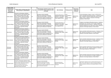 Użytki ekologiczne Nazwa użytku ekologicznego (jak w akcie prawnym o ustanowieniu) Rodzaj użytku ekologicznego (jak w akcie prawnym o ustanowieniu) Gmina Miasteczko Krajeńskie Pow. [ha] Czarne Jezioro ekosystem zachowujący unikatowe zasoby genowe i typy środowisk takich jak: naturalne zbiorniki wodne, kępy drzew i krzewów, bagna oraz służący zachowaniu w nienaruszonej formie szaty roślinnej i gatunków zwierząt chronionych Czerwone Bagna ekosystem zachowujący unikatowe zasoby genowe i typy środowisk takich jak: naturalne zbiorniki wodne, kępy drzew i krzewów, bagna oraz służący zachowaniu w nienaruszonej formie szaty roślinnej i gatunków zwierząt chronionych Staw Szulca ekosystem zachowujący unikatowe zasoby genowe i typy środowisk takich jak: naturalne zbiorniki wodne, kępy drzew i krzewów, bagna oraz służący zachowaniu w nienaruszonej formie szaty roślinnej i gatunków zwierząt chronionych Bagno Ustronie ekosystem zachowujący unikatowe zasoby genowe i typy środowisk takich jak: naturalne zbiorniki wodne, kępy drzew i krzewów, bagna oraz służący zachowaniu w nienaruszonej formie szaty roślinnej i gatunków zwierząt chronionych Torfowisko Żurawiniec ekosystem zachowujący unikatowe zasoby genowe i typy środowisk takich jak: naturalne zbiorniki wodne, kępy drzew i krzewów, bagna oraz służący zachowaniu w nienaruszonej formie szaty roślinnej i gatunków zwierząt chronionych Zgniłe Jezioro ekosystem zachowujący unikatowe zasoby genowe i typy środowisk takich jak: naturalne zbiorniki wodne, kępy drzew i krzewów, bagna oraz służący zachowaniu w nienaruszonej formie szaty roślinnej i gatunków zwierząt chronionych Kocewskie Zarośla ekosystem zachowujący unikatowe zasoby genowe i typy środowisk takich jak: naturalne zbiorniki wodne, kępy drzew i krzewów, 5,52 bagna oraz służący zachowaniu w nienaruszonej formie szaty roślinnej i gatunków zwierząt chronionych Obowiązująca podstawa prawna wraz z oznaczeniem miejsca ogłoszenia aktu prawnego Opis lokalizacji stan maj 2015 Rodzaj gruntów Sprawujący nadzór nad obszarem Opis 3,5 Uchwała Nr XXVIII/109/2005 Rady Gminy Miasteczko Krajeńskie z dnia 29 czerwca 2005 r. w sprawie ustanowienia użytków ekologicznych na terenie gminy Miasteczko Krajeńskie a) ols Leśnictwo Brzostowo, a) przechodzący w oddział Nr 193f, działka bagno; Nr 8193; b) oddział Nr b) wody stojące, 193d, działka Nr 8193, jezioro Nadleśnictwo Kaczory a) ols przechodzący w bagno, na pow. ok. 60% Ol IV kl. wieku, porośnięte roślinnością turzycowo - trawiastą w formie kęp, w niektórych miejscach widać lustro wody; b) wody stojące, jezioro; położony w obszarze chronionego krajobrazu "Dolina Noteci" 3,49 Uchwała Nr XXVIII/109/2005 Rady Gminy Miasteczko Krajeńskie z dnia 29 czerwca 2005 r. w sprawie ustanowienia użytków ekologicznych na terenie gminy Miasteczko Krajeńskie Leśnictwo Brzostowo, a) oddział Nr 192i, działka bagno Nr 8192; b) oddział Nr 191j, działka Nr 8191, Nadleśnictwo Kaczory a) bagno ols porośnięty roślinnością turzycowo - trawiastą w formie kęp, na ok. 70% pow. Ol III kl. wieku; b) bagno ols porośnięty roślinnością turzycowo - trawiastą w formie kęp, obniżenie odpływowe na ok. 60% Ol III kl. wieku; położony w obszarze chronionego krajobrazu "Dolina Noteci" 1,37 Uchwała Nr XXVIII/109/2005 Rady Gminy Miasteczko Krajeńskie z dnia 29 czerwca 2005 r. w sprawie ustanowienia użytków ekologicznych na terenie gminy Miasteczko Krajeńskie Leśnictwo Brzostowo, oddział Nr 222g, działka Nr 8222/2 bagno Nadleśnictwo Kaczory bagno porośnięte roślinnością turzycowo - trawiastą w formie kęp, częściowo porośnięte Ol w II i IV wieku; położony w obszarze chronionego krajobrazu "Dolina Noteci" 1,42 Uchwała Nr XXVIII/109/2005 Rady Gminy Miasteczko Krajeńskie z dnia 29 czerwca 2005 r. w sprawie ustanowienia użytków ekologicznych na terenie gminy Miasteczko Krajeńskie Leśnictwo Brzostowo, oddział Nr 204f, działka Nr 8204 bagno Nadleśnictwo Kaczory bagno porośnięte roślinnością turzycowo - trawiastą w formie kęp, częściowo porośnięte Ol I kl. wieku; położony w obszarze chronionego krajobrazu "Dolina Noteci" 3,71 Uchwała Nr XXVIII/109/2005 Rady Gminy Miasteczko Krajeńskie z dnia 29 czerwca 2005 r. w sprawie ustanowienia użytków ekologicznych na terenie gminy Miasteczko Krajeńskie Leśnictwo Brzostowo, oddział Nr 195d, działka Nr 8195 bagno Nadleśnictwo Kaczory bagno porośnięte roślinnością turzycowo-trawiastą w formie kęp, na 50% pow. Wb., kruszyna ; położony w obszarze chronionego krajobrazu "Dolina Noteci" 1,13 Uchwała Nr XXVIII/109/2005 Rady Gminy Miasteczko Krajeńskie z dnia 29 czerwca 2005 r. w sprawie ustanowienia użytków ekologicznych na terenie gminy Miasteczko Krajeńskie Leśnictwo Brzostowo, oddział Nr 215c, działka Nr 8215 bagno Nadleśnictwo Kaczory bagno porośnięte roślinnością turzycowo-trawiastą w formie kęp, na ok. 20% samosiew Os I kl. Wieku; położony w obszarze chronionego krajobrazu "Dolina Noteci" Uchwała Nr XXVIII/109/2005 Rady Gminy Miasteczko Krajeńskie z dnia 29 czerwca 2005 r. w sprawie ustanowienia użytków ekologicznych na terenie gminy Miasteczko Krajeńskie Leśnictwo Brzostowo, oddział Nr 222Bi, działka Nr 8222/9 Nadleśnictwo Kaczory zadrzewienie, fragment muraw i zarośli kserotermicznych, na ok. 80% tarnina, dereń, głóg, Os, miejsce licznego gniazdowania ptaków; położony w obszarze chronionego krajobrazu "Dolina Noteci" Użytki ekologiczne ekosystem zachowujący unikatowe zasoby genowe i typy środowisk takich jak: naturalne zbiorniki wodne, kępy drzew i krzewów, 3,24 Torfniaki Solnówskie bagna oraz służący zachowaniu w nienaruszonej formie szaty roślinnej i gatunków zwierząt chronionych Grodzisko Linki Obszar pozostałości grodziska średniowiecznego, wpisanego do rejestru zabytków. Położony jest na wzgórzach 3,12 morenowych stanowiących p