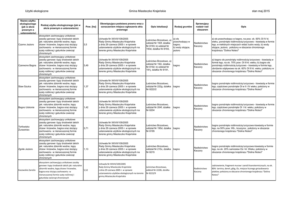 Użytki ekologiczne Gmina Miasteczko Krajeńskie stan maj 2015