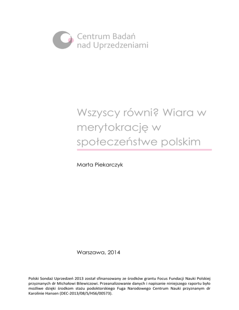 Wszyscy równi? Wiara w merytokrację w społeczeństwe polskim