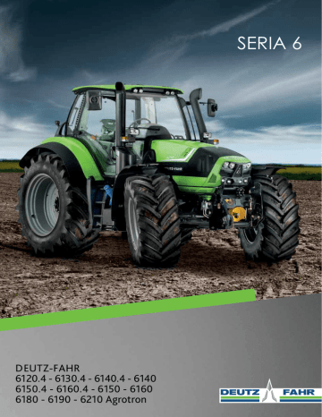 Seria 6 DEUTZ-FAHR 6120.4 - 6130.4 - 6140.4 - 6140 6150.4 - 6160.4 - 6150 - 6160 6180 - 6190 - 6210 Agrotron 02-03 GAmA modEli M o c , k tÓ r a z ł at wości ą s pros ta najciĘŻszyM wyzwanioM. oprócz wyjątkowych właściwości trakcyjnych, dużej mocy i wszechstronności, nowe modele Serii 6 oferują wyposażenie, które odpowiada w pełni potrzebom najbardziej wymagających użytkowników. Nowe modele deutz-fahr Seri 6 zostały zaprojektowane z myślą o potrzebach nowoczesnych rolników i usługodawców. Ciągniki łączą doskonałe parametry eksploatacyjne, najwyższą ergonomię i niskie zużycie paliwa. Wydajność i niskie koszty eksploatacji są wypadkową wielu czynników. Nowa Seria 6 oferuje duży wybór mod eli, bogate wyposażenie s tandardowe oraz wiele o pcji wyposażenia dodatkowego. Zarówno silniki 4- jak i 6-cylindrowe wyposażono w system oczyszczania spalin SCr z płynem AdBlue oraz wysoko-ciśnieniowy układ wtryskowy dCr (deutz Common rail). 4-cylindrowe modele ciągników Serii 6 z mniejszym rozstawem osi, doskonale sprawdzą się w pracach z ładowaczem czołowym, podczas gdy modele 6-cylindrowe zaprojektowano specjalnie do wykonywania ciężkich prac polowych. Nowa Seria 6 to kolejny etap ewolucji ciągników marki dEutZ-fAHr średniej i wysokiej mocy. Agrotron Serii 6 z silnikiem 4-cylindrowym to doskonały wybór w przypadku prac wymagających zwrotności, szybkości 4 LUB 6 CYLiNDrÓW SPrOSTa WSZYSTKiM WYZWaNiOM. manewrowania, wersje 6-cylindrowe to odpowiedź na potrzeby rolników poszukujących mocy i wytrzymałości. duż y wybór konfiguracji wyposażenia jest odpowiedzią na szerokie spektrum potrzeb: od prac polowych, siewu, prac z maszynami linii zielonkowej po transport drogowy z przyczepami. Wyjątkowa wszechstronność modeli Serii 6 sprawia, że ciągniki pracują zarówno w dużych jak i średniej wielkości gospodarstwach oferując najlepsze parametry eksploatacyjne. Sprawdzone skrzynie biegów produkowane przez Zf gwarantują wieloletnią pracę przy wysokiej niezawodności. modele dEutZ-fAHr Serii 6 oferują trzy rodzaje układów napędowych: 6-cio biegowe skrzynie z czterema półbiegami Powershift, modele z napędem CShift i innowacyjnym sposobem sterowania za pomocą joysticka oraz bezstopniowe napędy w modelach ttV. W zależności od wersji ciągnik wyposażony jest w standardowy podłokietnik bez joysticka, nowy joystick PowerComS lub rozbudowany podłokietnik z joystickiem w modelu ttV. Wydajna hydraulika, mocny podnośnik z tyłu i z przodu to tylko niektóre cechy jakie stawiają modele Serii 6 na czołowej pozycji w swojej klasie. Już dziś przekonaj się o wyższości modeli dEutZ-fAHr. Seria 6 to jakość, trwałość, ekonomia eksploatacji, niezawodność oraz wysoki komfort i ergonomia użytkowania. dEutZ-fAHr Serii 6 to coś więcej niż ciągnik. 04-05 WyPoSAŻENiE Seria 6 eKONOMiCZNY CiĄGNiK DO TWOJeGO GOSPODarSTWa CHARAKTERYSTYKA kabina S-Class² - cicha, komfortowa i ergonomiczna. Skrzynia 48P+48t lub 40P+40t z 4 lub 6 biegami lub napęd CShift z 4 półbiegami Powershift, funkcjami Automatic Powershift, Speedmatching, zaworami SenseShift, sprzęgłami SenseClutch, ComfortClutch. 4 prędkości Wom, Wom ECo, modulowany start wałka. Zintegrowany podnośnik przedni oraz Wom przedni. obsługa osprzętu przez standard iSoBuS, obsługa systemu Agrosky. Amortyzacja przedniej osi, mechaniczna lub pneumatyczna amortyzacja kabiny, amortyzowany fotel. mocny, wydajny i ekonomiczny silnik 4- lub 6-cylindrowy silnik dEutZ z systemem oczyszczania spalin SCr. układ hydrauliczny z maksymalnie 7 obwodami sterowanymi elektronicznie oraz pompą o wydajności maksymalnej 120 l/min. Pakiet oświetlenia z maksymalnie 26 reflektorami oraz opcjonalne światła robocze Xenon. Napęd, hydraulika, podnośnik, Comfortip sterowane za pomocą joysticka. maksymalne ogumienie tylne 42" dla najlepszej trakcji i małego ugniatania gleby. Podnośnik o udźwigu 9,2 tony – obsługa każdego rodzaju osprzętu. Nowe modele Serii 6 to odpowiedź na potrzeby rolników poszukujących nowoczesnych i ekonomicznych maszyn. Prostota obsługi, doskonałe właściwości trakcyjne w połączeniu z niskimi kosztami eksploatacji to kluczowe cechy kojarzone z modelami Agrotron. Nowa Seria 6 uosabia wszystkie z nich. System SCr redukuje zawartość zanieczyszczeń w spalinach, redukując jednocześnie koszty eksploatacji. Wydajne silniki dE utZ współpracują ze skrzyniami biegów Powershift z zaworami proporcjonalnymi SenseShift, co gwarantuje najwyższy poziom komfortu. Wersja CShift to wyjątkowy sposób sterowania pracą układu napędowego, operator zmienia biegi i półbiegi korzystając z wygodnego, nowego joysticka wielofunkcyjnego, za pomocą którego jest w stanie sterować także pracą podnośnika i hydrauliki. modele Serii 6 oferują także doskonały design. Wygląd zewnętrzny opracowano wspólnie z biurem projektowym Giugiaro design. Agresywny wygląd podkreślają dodatkowo nowoczesne światła lEd do jazdy dziennej z przodu i nowoczesne lampy lEd z tyłu. Nowoczesna bryła nadwozia, agresywne linie maski silnika i kabiny sprawiają, że nikt nie przejdzie obojętnie obok nowej Serii 6 marki deutz-fahr. 06-07 AGrotroN SPraWDZONa JaKOŚĆ... aGrOTrON TO PeWNa MarKa Ponad 60000 ciągników Agrotron wyprodukowanych przez markę dE utZ-fAHr sprawia, że jest to jeden z największych producentów niemieckich ciągników na świecie. Jest to ciągnik oferujący dużą wszechstronność i wydajność, co potwierdza ponad 100 milionów godzin prac polowych. Nazwa Agrotron zobowiązuje. Jednocześnie jest synonimem wysokiej jakości wykonania oraz niezawodności podzespołów. potwierdzi twoje oczekiwania. Nowa Seria 6 oferuje szereg rozwiązań opracowanych w oparciu o najwyższe standardy niemieckich inżynierów. Nowa Seria 6 jest produkowana w lauingen w Niemczech przez wysoko-wykwalifikowaną kadrę. każdy z wysokiej jakości podzespołów przechodzi