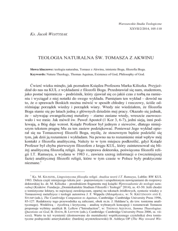 TEOLOGIA NATURALNA ĝW. TOMASZA Z AKWINU