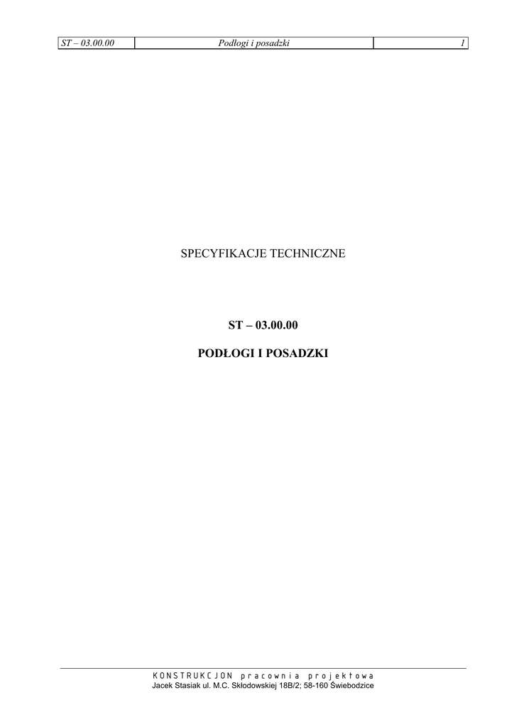 SPECYFIKACJE TECHNICZNE ST – 03.00.00 PODŁOGI I POSADZKI