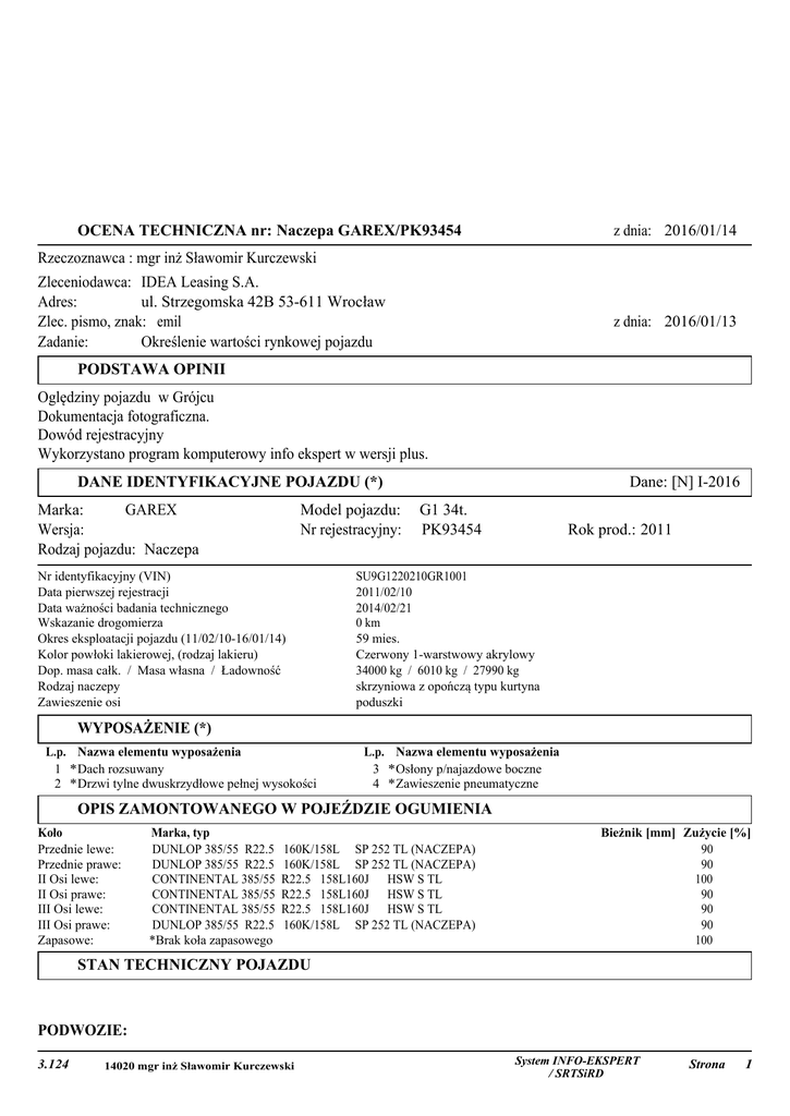 OCENA TECHNICZNA nr: Naczepa GAREX/PK93454