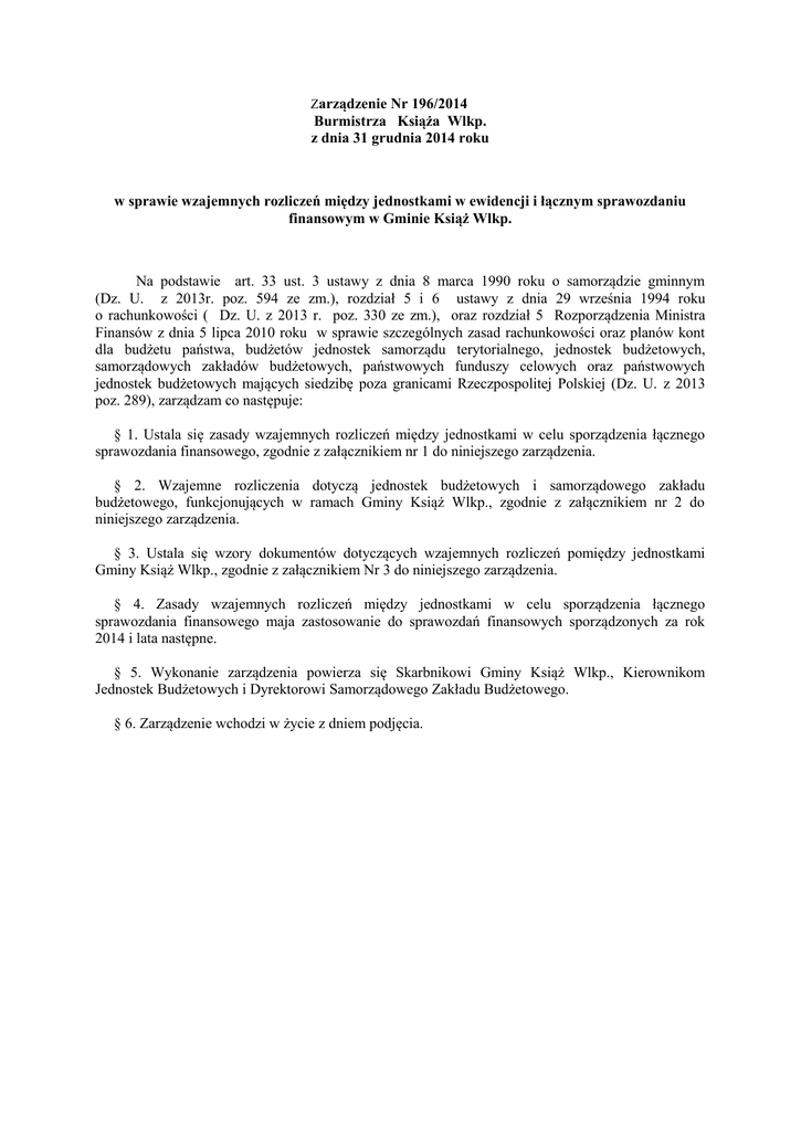 Zarządzenie Burmistrza Nr 196 w sprawie wzajemnych