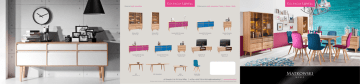 Kolekcj a Lovell Materiał: dąb naturalny Witryna 4D2S 128 / 44 / 165 Komoda 3D3S 191 niska 191 / 44 / 66 Stół 150-250 / 90 / 75 Witryna 2D1S 65,5 / 44 / 165 Komoda 3D3S 191 wysoka 191 / 44 / 82 Komoda 3D3S 159 niska 159 / 44 / 66 Stół z dostawkami Komoda 3S niska 65,6 / 44 / 66 Stolik 120 / 70 / 50 Wybarwienie: dąb naturlany / fuksja / chaber / biały Komoda 3D3S 159 wysoka 159 / 44 / 82 Szafka RTV 2K 191 / 44 / 50 Komoda 3S wysoka 65,6 / 44 / 82 Szafka RTV 1K 128 / 44 / 50 Krzesło skóra 45 / 58 / 96 ul. Drawska 1, 64-761 Krzyż Wlkp. | tel./fax +48 67 256 44 96, [email protected] | www.matkowski.pl Niniejsza ulotka nie stanowi oferty. Jest publikowana jako materiał informacyjny. Producent zastrzega sobie prawo do wprowadzania zmian wzornictwa, wymiarów, funkcji prezentowanych mebli. Kolekc j a L ovell Kolekc j a L ovell Linia mebli Lovell nie wprost ale nawiązuje do stylistyki z lat 50 i 60-tych ubiegłego wieku. Jest to kolekcja szczególnie dla ludzi gustujących w meblach w stylu skandynawskim, który obecnie cieszy się dużym zainteresowaniem. Zgrabne kształty, proste formy, ostre kolory, delikatne krągłości a wszystko to na wysokich, smukłych nóżkach. Atrakcyjność kolekcji zwiększa możliwość własnego ich komponowania, dzięki dostępności frontów w 4 kolorach. Umiejętne połączenie dębu naturalnego z fuksją czy chabrem uczyni zarówno meble jak i wnętrze wyjątkowym i niepowtarzalnym. Natomiast dla Klientów, którzy lubią wnętrza ponadczasowe proponujemy połączenie dębu naturalnego z zawsze modną bielą. Całość kolekcji dopełniają wyjątkowo ciekawe krzesła o obłych kształtach i na oryginalnych nogach.
