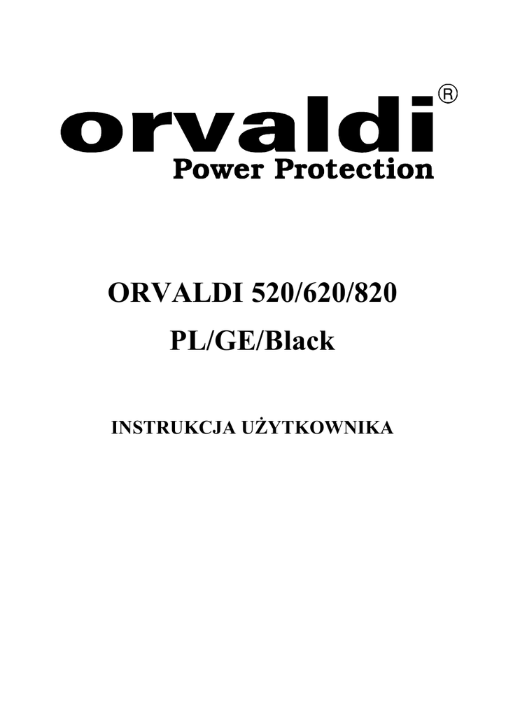 ORVALDI 520/620/820 PL/GE/Black INSTRUKCJA UŻYTKOWNIKA 1 Środki ostrożności. Niniejsza instrukcja obsługi UPS-a ORVALDI® omawia instalację i użytkowanie urządzenia. Przed rozpakowaniem i uruchomieniem urządzenia należy się zapoznać z treścią niniejszej instrukcji. UWAGA ! W celu uniknięcia porażenia prądem elektrycznym oraz wywołania pożaru, urządzenie należy użytkować w temperaturze i wilgotności pokojowej, wolnej od przewodzących zanieczyszczeń (Patrz dane techniczne dotyczące dopuszczalnej temperatury i wilgotności). UWAGA ! W celu ograniczenie ryzyka porażenia prądem elektrycznym, urządzenia nie można zdemontować za pomocą zwykłego śrubokrętu. Naprawę należy powierzyć wykwalifikowanemu personelowi serwisu. UWAGA ! Wewnątrz urządzenia znajdują się części pod napięciem niebezpiecznym dla życia człowieka. Napięcie to jest obecna na elementach urządzenia (bateriach) nawet gdy jest ono odłączone od sieci zasilającej. Urządzenie od strony sieci zasilającej jest zabezpieczone od zwarcia i przeciążenia bezpiecznikiem topikowym. Gniazda wtykowe znajdujące się na urządzeniu nie są chronione i panuje na nich niebezpieczne napięcie dla życia człowieka. 2 Instalacja i podłączenie. 2.1 Rozpakuj UPS-a i sprawdź czy nie został uszkodzony podczas transportu. Jeśli zauważyłeś uszkodzenie spakuj i zwróć UPS-a do punktu zakupu. 2.2 Podłącz UPS-a do zasilania na około 8 –10 godzin aby doładował baterie. Dopiero po tym czasie podłącz do UPS-a urządzenia wymagające zasilania awaryjnego (komputery, monitory, inne). 2.3 UPS powinien być umieszczony w miejscu ze swobodnym dostępem powietrza, niezapylonym i suchym. 2.4 Podłącz kabel zasilający do gniazda zasilającego z uziemieniem a następnie do gniazda w UPS-ie. 2.5 Podłącz urządzenia, które wymagają zasilania awaryjnego do gniazda . 2.6 Załącz UPS-a. Po wciśnięciu przycisku „ON/OFF” UPS przetestuje elektronikę i załączy się. 2.7 Aby UPS był zawsze gotowy do pracy zaleca się pozostawienie UPS’a ciągle włączonego. UPS przystosowany jest do pracy ciągłej. 2 3 Panel czołowy, panel tylni • 520/620/820 PL/Black 1. Włącznik ON/OFF 2. Dioda LED sygnalizująca poprawny stan stan pracy 3. Dioda LED sygnalizująca bateryjny stan stan pracy • 520/620/820 PL • 520/620/820 Black 1. RJ 11 dla 520VA a RJ45 dla 620/820VA zabezpieczenie linii telefonicznej przed przepięciami 2. Port RS 232 do komunikacji UPS-a z komputerem 3. Automatyczne zabezpieczenie zwarciowe 4. Polskie gniazdo do podłączenia urządzeń wymagających awaryjnego zasilania 5. Gniazdo IEC320 do podłączenia urządzeń wymagających awaryjnego zasilania 6. Kabel zasilający. 4 Oznaczenia stanów pracy (wskaźnik diodowy). • • UPS 520/620/820 PL/Black jest załączony i pracuje prawidłowo – Dioda zielona pali się ciągle Praca bateryjna -520/620/820 PL/Black – Dioda pomarańczowa zapala się i gaśnie co 3 sek 3 • • 5 Baterie zbliżają się do stanu niskiego poziomu napięcia. -520/620/820 PL/Black – Dioda pomarańczowa zapala się i gaśnie co 1 sek Należy zapisać dane na komputerze i wyłączyć go a następnie wyłączyć UPSa Nie naładowane lub uszkodzone baterie lub UPS -520/620/820 PL/Black – Obie diody zielona i pomarańczowa gasną Złącze komunikacyjne. Komunikacja po RS-ie z komputerem. Bezpłatne oprogramowanie do pobrania na stronach internetowych www.orvaldi.com.pl . Oprogramowanie z odpowiednim kabelkiem RS-owym można również zakupić zamawiając e-mailem [email protected] . 6 Usuwanie problemów. Gdy UPS ORVALDI działa nieprawidłowo należy sprawdzić: • Czy jest napięcie w gniazdku zasilającym (czy zabezpieczenia są sprawne i włączone) • Czy UPS jest włączony do prawidłowego gniazdka • Czy wartość napięcia zasilającego odpowiada parametrom znamionowym • Czy UPS nie jest przeciążony • Czy baterie w UPS-ie są naładowane Jeśli UPS ORVALDI działa nieprawidłowo proszę skontaktować się z dostawcą. Przy kontakcie z serwisem potrzebna jest karta gwarancyjna z potwierdzoną datą zakupu oraz rachunek. ORVALDI Power Protection Sp. z o.o. Centrala : REFORM PLAZA Aleje Jerozolimskie 123 02-017 Warszawa Internet: www.orvaldi.com.pl Centrum Logistyki i Serwisu : ul. Wrocławska 33d 55-090 Długołęka k/Wrocławia e-mail: [email protected] 4 Dane techniczne. Model Moc pozorna Moc czynna Napięcie Zakres Częstotliwość Napięcie Częstotliwość Reg. napięcia Wyjście Reg. częstotliwości Kształt napięcia Baterie Napięcie Typ bezobsługowe Czas podtrzymania Ładowanie Czas przełączenia Wejście Sygnalizacja Alarmy Zabezpieczenia przed: Interfejs Temperatura pracy Wilgotność Waga Wymiary 520PL/GE/Black 620PL/GE/Blac 820 GE/Black k 520VA 620VA 820VA 312W 372W 492W 230V +20% / -25% (zakres działania AVR) 50Hz ± 5Hz 230V 50Hz ± 5Hz ± 3% (praca z baterii) ± 0,3% (praca z baterii) Zbliżona, schodkowa sinusoida Bezobsługowe, żelowe kwasowo-ołowiowe 12V 7Ah 12 V 9 Ah 5 – 15 min. 8 godzin do 90 % po pełnym ładowaniu < 2 ms Praca z sieci : zielona dioda ciągle Praca z baterii : pomarańczowa dioda miga Uszkodzenie: zielona i pomarańczowa dioda gaśnie Praca z baterii, niski poziom baterii, brak napięcia wejściowego Niskie/wysokie napięcie, przepięcia i spadki napięć, filtracja przepięć w linii tel. Stykowe złącze DB9 0 – 40 °C 0 – 95% 6 kg 7 kg 7,5 kg 325 x 110 x 145 5