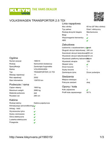 http://www.kleynvans.pl/199315/ 1/3 VOLKSWAGEN