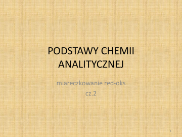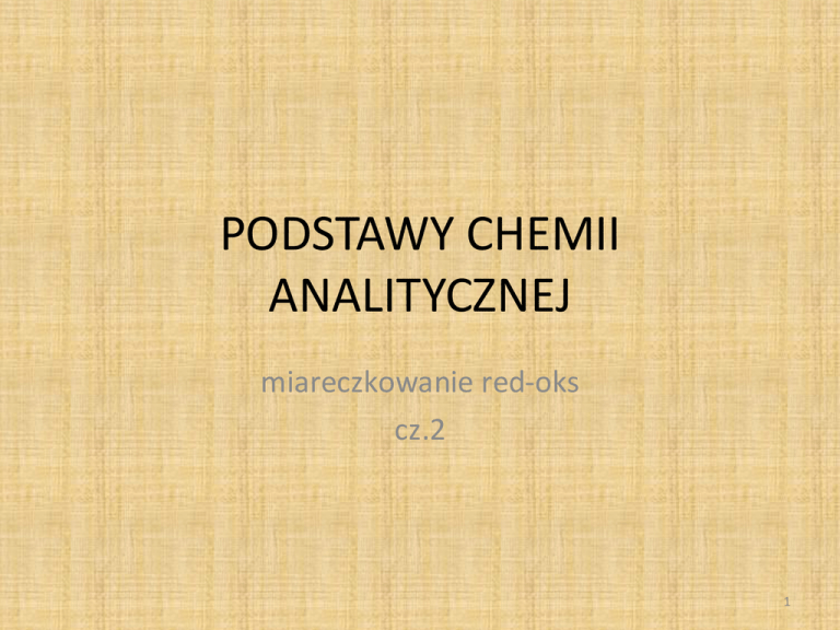 PODSTAWY CHEMII ANALITYCZNEJ miareczkowanie red-oks cz.2 1 Manganometria MnO4 - - E0’ ~1,5 V przy pH ~0 (H SO ) → silny utleniacz! 2 4 MnO4- + 8H+ + 5e- Mn2+ + 4H2O titrant: KMnO4 niezbyt czysty (NIE substancja wzorcowa pierwsza) rozkłada się (4MnO 4- + 2H2O → MnO2 4MnO2 + 3O2+ 4OH-) utlenia zanieczyszczenia (np. organikę) 1. roztwór przygotować ok 2 tygodnie przed analizą (lub godzinę gotować) 2. oddzielać MnO2 3. mianować okresowo (na Na2C2O4, As2O3, inne), najlepiej przed użyciem Detekcja PK: stężony titrant – bez wskaźnika rozcieńczony titrant – ferroina lub difenyloamina Manganometria (MnO4-) C2O4 2- 2 MnO4- + 5 H2C2O4 + 6 H+ 2 Mn2+ + 10 CO2 + 8 H2O komentarze: mianowanie, na gorąco, autokataliza Ca2+ Ca2+ + C2O4 2- CaC2O4 ↓ CaC2O4 + 2 H+ Ca2+ + H2C2O4 2 MnO4- + 5 H2C2O4 + 6 H+ 2 Mn2+ + 10 CO2 + 8 H2O H2O2 2 MnO4- + 5 H2O2 + 6 H+ 2 Mn2+ + 5 O2 + 8 H2O Manganometria Fe2+ MnO4- + 5 Fe2+ + 8 H+ Mn2+ + 5 Fe3+ + 4 H2O … analiza stopów … roztwarzanie w kwasie redukującym … problem częściowego utlenienia Fe (Fe2+ → Fe3+) oraz obecności chlorków - Cl- / Cl20 (E0’ ~1,4 V ) Sn2+ + 2 Fe3+ Sn4+ + 2 Fe2+ 2 Hg2+ + Sn2+ + 4 Cl- Sn4+ + 2 Hg2Cl2 nieKMnO utlenia 4 Mieszanina Reinharda-Zimmermanna H2SO4 + MnSO4 + H3PO4 pH obniżenie E0 ’ (MnVII/II) (by nie utleniać chlorków) kompleksowanie Fe3+ - obniżenie E0’ (FeIII/II) silniejszy reduktor, większy skok - kompleksy bezbarwne (detekcja PK) oksydymetria manganometria chromianometria MnO4- + 8 H+ + 5 e- Mn2+ + 4 H2O Cr2O7-2 + 14 H+ + 6 e- 2 Cr3+ + 7 H2O komentarze: trwałe roztwory, kłopotliwa detekcja PK cerometria Ce4+ + e- Ce3+ komentarze: trwałe roztwory, nie przeszkadzają chlorki (+) niższy potencjał, kłopotliwa detekcja PK (-) jodometria bromometria bromianometria I2 + 2 e- 2 IBr2 + 2 e- 2 Br- BrO3- + 6 e- + 6 H+ Br- + 3 H2O I3- + 2 e- 3 I- JODOMETRIA skrobia Detekcja I2 CHCl3 lub CCl4 E(I3-/I-) 0,5 V I2 - oznaczanie reduktorów (oksydymetria) detekcja nadmiaru I2 (PK) lub odmiareczkowanie nadmiaru I2 I2 + 2 S2O32- 2 I- + S4O62S2O32SO32AsIII S2i pośrednio metale (jako siarczki) Substancja wzorcowa roztwór I2 w KI Substancja nie-wzorcowa, mianowanie na I2, K2Cr2O7, KIO3 (IO3- + 5I- + 6H+ 3I2 + 3H2O) (w NaHCO3, dlaczego ….) I2 + H2S 2 I- + S + 2H+ 1. Siarczek dodad do znanej ilości I2/KI (zakwaszonego HCl) 2. Nadmiar I2 odmiareczkowad Na2S2O3 roztworu siarczku nie można zakwasid do miareczkowania bezpośredniego (H 2S) nie można miareczkowad w środowisku zasadowym (I 2 dysproporcjonuje, S2- SO42- (częściowo)) JODOMETRIA I- - oznaczanie utleniaczy dodad nadmiar I- i odmiareczkowad powstały I2 (trudno stwierdzid P.K. w miareczkowaniu reduktometrycznym) H2O2 H2O2 + 2 I- + 4 H+ I2 + 2 H2O nadmiar Cu2+ 2Cu2+ + 4 I- miareczkowanie Na2S2O3 I2 + 2 CuI dlaczego nie miareczkowad utleniaczy „od razu” za pomocą Na2S2O3?? BROMIANOMETRIA BrO3- + 6e- + 6H+ Br- + 3H2O KBrO3 substancja wzorcowa detekcja PR: BrO3- + 5Br- + 6H+ 3Br2 + 3H2O alternatywnie: Br2 + 2 I- I2 + 2 Br(skrobia) Miareczkowanie bromianami w obecności nadmiaru bromków to miareczkowanie bromem! utlenia (odbarwia) nieodwracalnie oranż metylowy lub czerwieo metylową BrO3- + 5Br- + 6H+ 3Br2 + 3H2O BROMIANOMETRIA / BROMOMETRIA AsIII SbIII SnII Typowe reduktory … można również ilościowo bromowad „organikę „ (+ miareczkowania w roztworach niewodnych) Przyłączenie: Podstawienie: C=C + Br2 Br-C-C-Br C-H + Br2 C-Br + H+ + Br- Gdy szybka reakcja: miareczkowad KBrO3 roztwór z dużym nadmiarem KBr (generowanie Br2) do P.K. Gdy powolna reakcja: 1. dodad znany nadmiar KBrO3 (z dużym nadmiarem KBr), poczekad 2. odmiareczkowad nadmiar Br2 Br2 + 2I- I2 + 2BrI2 + 2 S2O32- 2 I- + S4O62skrobia BROMIANOMETRIA / BROMOMETRIA Fenol 1. dodad znany nadmiar 2. odmiareczkowad nadmiar Br2 Al3+ (jako oksynian) 1. strącid z 8-hydroksychinoliną jako Al(C9H6ON)3 2. oddzielid, rozpuścid w HCl (rozkład kompleksu) 3. dodad znany nadmiar KBrO3 z KBr Br + 2 Br2 2Br- + 2H+ + 4. odmiareczkowad nadmiar Br2 Br