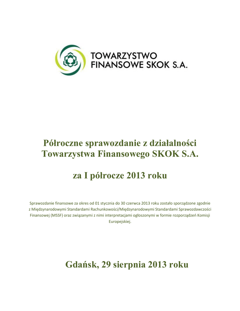 Półroczne sprawozdanie z działalności za I półrocze 2013