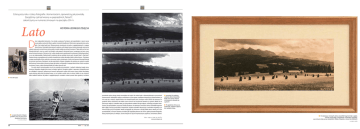 TATRY TPN TATRY TPN TATRY TPN Iluminacja Cztery pory roku i cztery fotografie z komentarzem, opowieścią, jak powstały. Zaczęliśmy cykl od wiosny w poprzednich „Tatrach”, zakończymy w numerze zimowym na początku 2014 r. Lato Długo się zastanawiałem, jak to wszystko napisać. Bo jak ujarzmić uczucia w gazetowym tekście? Gdyby to było proste, poeci straciliby swą licencję. Jak napisać o Maćku Berbece, poecie życia? Człowieku, przy którym inni przeżywali swoiste katharsis w górach. Człowieku, który doskonale czuł słowa wspinacza i pisarza Wawrzyńca Żuławskiego o tym, że w górach nie zostawia się przyjaciela, nawet gdyby był bryłą lodu. HISTORIA JEDNEGO ZDJĘCIA D zieci najbardziej lubią lato... bo wtedy są wakacje. Pamiętam, jak wyjeżdżałem z ojcem zaraz na początku wakacji do Ważca, gdzie mieszkali dziadkowie. Mieli jeszcze gospodarstwo, pola, łąki. A te trzeba było kosić. Wspomnienia sianokosów to jedne z najpiękniejszych z mojego dzieciństwa. Dziesiątki drewnianych szałasów, setki kopek siana, kobiety śpiewały, świerszcze cykały, mężczyźni ostrzyli kosy, słońce paliło, motyle siadały na polnych kwiatach. Także dziś, po iluś tam dziesięcioleciach, mam w uszach te dźwięki, czuję zapach skoszonej trawy i suszącego się siana, mam przed oczyma kosiarzy z Tatrami w tle. Ludzie wtedy jeszcze pozdrawiali się słowami „Pánbohpomáhaj”, na co się odpowiadało „Pánbohuslyš”, podobnie jak po polskiej stronie gór „Szczęść Boże” i „Daj Boże”. Dopiero teraz, z perspektywy lat, w pełni uświadamiam sobie, jak piękne było to dzieciństwo... Pamiętam mojego pradziadka, który walczył w pierwszej wojnie światowej, a kiedy miał prawie dziewięćdziesiąt lat, jeszcze kosił kosą. Pamiętam, że jako pięcioletni chłopiec biegałem do potoku po wodę do osełek dla kosiarzy. Rozrzucałem skoszoną trawę, jak widać na fotografii z mojego dzieciństwa. Potem uczyłem się obracać siano, a jako dziesięciolatek już brałem kosę do rąk. Po wielu latach zorientowałem się, że to wszystko już przeszłość... żadnych szałasów, kopek siana, kosiarzy. Wszędzie okrągłe bele trawy w białym igelicie. Zacząłem jeździć z aparatem fotograficznym po odległych miejscach, głównie po terenach górzystych, gdzie żyli jeszcze starzy ludzie kochający swoją ziemię, gdzie dla tej jednej krowy, co im została, suszyli siano na zimę. Udało mi się uchwycić kilka rzadkich kadrów. Na jeden z najpiękniejszych musiałem czekać prawie dwie godziny. Jechałem Ewa Dyakowska-Berbeka fot. JAKUB BRZOSKO C Yaro M. Kupčo pomalutku polną drogą, kiedy zauważyłem te kopki. Ale niebo było w dziewięćdziesięciu procentach zachmurzone. Rozłożyłem statyw, umieściłem na nim aparat, ustawiłem ekspozycję i postanowiłem, że nie ruszę się z miejsca, dopóki słońce nie oświetli kopek siana, choćbym miał tu tkwić do wieczora. Po godzinie słońce zaświeciło, ale wielka czarna chmura na horyzoncie zlewała się z górami. Widać to na pierwszym zdjęciu. Czekałem dalej, po pół godzinie zrobiłem drugie zdjęcie, z którego już byłem zadowolony, ale pomyślałem, że jeszcze chwilę zaczekam. Po dziesięciu minutach słońce oświetliło fragment łąki w głębi, tworząc jasną łatkę w krajobrazie. Szybko ustawiłem ekspozycję i zwolniłem migawkę, a po minucie było już po wszystkim. Niebo zaciągnęło się chmurami i zaczął padać deszcz. Mnie już to nie przeszkadzało, z cennym skarbem chciałem jak najprędzej dotrzeć do ciemni, gdzie powstała fotografia, którą prezentujemy na wklejce. Znowu klasyka na ręcznie wytwarzanym papierze, cieniowana złotem. Już jako kilkuletni chłopiec grabiłem siano na polu moich dziadków koło Ważca Tekst i zdjęcia: YARO M. KUPČO www.yaromkupco.sk fot. ze zbiorów rodzinnych powyżej: Po godzinie czekania słońce oświetliło kopki, ale czarna chmura na horyzoncie zlewała się z górami Po godzinie chmura się podniosła, zrobiłem zdjęcie, ale czekałem dalej... hcę o tym wszystkim porozmawiać z żoną Maćka, Ewą Dyakowską-Berbeką, i ich synami. Nie wiem, czy się uda. Nie chcę się narzucać, a jednocześnie czuję potrzebę bycia z nimi. Przekraczam próg domu w Zakopanem pod Reglami, z którego Maciek wyjeżdżał na swoje wyprawy od 1991 r. Witają mnie psy, śpiewająca Sonia (którą właśnie Maciek nauczył tęsknie zawodzić) i przyjacielski dalmatyńczyk Dorcia. Witam się z Ewą. Są także młodsi synowie – Franciszek i Jasiu. Starszy od nich Staszek jest grafikiem po gdańskiej ASP i pracuje w Gdańsku, a najstarszy Krzysiek jest doktorem medycyny, pracuje w Warszawie. Gdy tylko mogą, wszyscy przyjeżdżają do domu, do Zakopanego. Ewa zaparza kawę. Aromat roznosi się po domu, który jest jak jedna wielka góra. Jest w nim zieleń podnóży, hale pokoi, w których mieszkają uzdolnieni domownicy, a w końcu skalne kalenice dachu. Z okien widać Tatry i dominujący Giewont. Ewa – scenograf i plastyk w Teatrze Witkacego ma na poddaszu swoją pracownię. Tam tworzy kolaże, w których główną postacią jest najczęściej człowiek w drodze, wspinacz, góra. Jest w jej pracach jakaś niesamowita symbolika, niemal jak rytm powtarza się jedna dominująca postać. Pytam, czy to Maciek. Ewa przyznaje: – To prawda. Po wizycie w pracowni schodzimy do doliny, do kuchni. Po Po dziesięciu minutach słońce oświetliło fragment łąki w głębi, tworząc jasną łatkę w krajobrazie. Zwolniłem migawkę, a po minucie było już po wszystkim. Widok z Rzepisk w stronę Tatr Bielskich fot. YARO M. KUPČO 88 TATRY TPN lato 2013