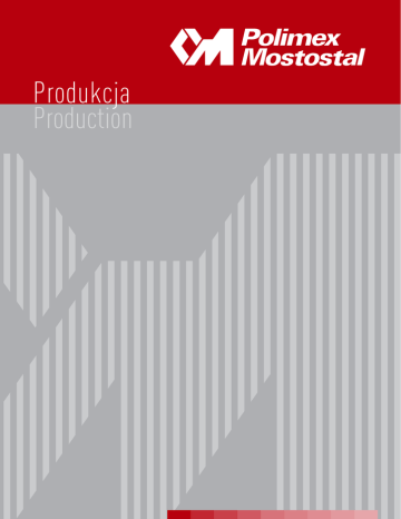 Produkcja Production Spis treści Ta b le o f C o n t e n t s Polimex-Mostostal SA 2 Oferta – produkcja 6 Polimex-Mostostal SA The Offer – Production Park maszynowy i stosowane technologie 14 Zabezpieczenie wyrobów stalowych przed korozją 18 Obsługa logistyczna projektów 22 Montaż wyrobów stalowych 24 Zarządzanie projektem 26 Grupa Kapitałowa 28 Jakość usług 32 Referencje 38 Kontakt 48 M a c h i n e r y P a r k a n d Te c h n o l o g y A p p l i e d Corrosion Protection of Steel Products Logistical Services for Projects A s s e m b ly o f S t e e l P ro d u c t s Project Management Capital Group Quality of Services References Contact Polimex-Mostostal SA Polimex-Mostostal to notowana na Giełdzie Papierów Wartościowych w Warszawie spółka, aktywna od 1945 roku jako firma handlowa i inżynieryjno-budowlana. Spółka realizuje zadania w formule generalnego wykonawstwa we współpracy z własną Grupą Kapitałową oraz ze sprawdzonymi w wielu kontraktach podwykonawcami. Równolegle do działalności w zakresie generalnego wykonawstwa Polimex-Mostostal specjalizuje się w produkcji wyrobów stalowych i krat pomostowych oraz w zabezpieczeniach antykorozyjnych, w tym cynkowaniu ogniowym. Polimex-Mostostal oferuje usługi w zakresie budownictwa, realizacji obiektów przemysłowych, dostaw linii technologicznych, maszyn i urządzeń oraz części zamiennych, a także serwisu technicznego dla następujących sektorów: • chemii i ochrony środowiska • energetyki • budownictwa drogowego i kolejowego • budownictwa przemysłowego i ogólnego Konstrukcje stalowe i kanały reaktora, Kalundborg, Dania Steel structures and reactor channels, Kalundborg, Denmark Polimex-Mostostal offers services with respect to construction, supply of complete industrial products, process lines, machinery and equipment as well as replacement parts, and also technical services for the following sectors: • chemical industries and environment protection • power engineering • road and railway construction • industrial and general construction Polimex-Mostostal SA is an engineering and construction company, active in the market since 1945, listed at Warsaw Stock Exchange. The Company has been basing its general contractor activity on cooperation with its own Capital Group as well as subcontractors verified during the realisation of numerous contracts. Parallel to the activity as a general contractor Polimex-Mostostal specialises in manufacturing of steel products and platform gratings and in corrosion protection, including hot dip galvanizing. Cynkowanie ogniowe elementów hali Hala produkcyjna Zakładu Wyrobów Hot dip galvanizing of halls elements Stalowych w Siedlcach Production hall of Steel Products Plant in Siedlce 2|3 Polimex-Mostostal SA Polimex-Mostostal jest jedną z największych grup budowlanych w Polsce. Należy do liderów sektora budowlanego pod względem: zakresu usług, portfela zamówień, wielkości przychodów, doświadczenia, profesjonalizmu i zdobytych referencji. Firma jest dobrze rozpoznawalna i aktywna również poza granicami Polski. By uzyskać lepszy dostęp do zagranicznych rynków, Polimex-Mostostal utrzymuje międzynarodową sieć sprzedaży bezpośredniej, a także przez pośredników w większości krajów UE oraz w Rosji i na Ukrainie, posiada również spółki zagraniczne. Referencje Polimex-Mostostal obejmują: • ponad 700 obiektów wybudowanych „pod klucz” w 60 krajach świata • ponad 100 polskich zakładów przemysłowych wyposażonych w nowoczesne technologie i urządzenia produkcyjne sprowadzone z zagranicy Konstrukcja stalowa dźwigu portowego, Holandia Steel structure of harbour crane, The Netherlands Polimex-Mostostal references include: • over 700 turn-key facilities built in 60 countries in the world • over 100 Polish industrial plants equipped with modern imported technologies and production equipment Polimex-Mostostal is one of the largest construction groups in Poland. It is one of the construction leaders in terms of: scope of services, order backlog, amount of revenue, experience, professionalism and obtained references. The Company is well-recognised and active outside Poland as well. In order to obtain a better access to foreign markets, Polimex-Mostostal maintains its international network of direct sale and sale conducted by agents in most EU countries as well as Russia and Ukraine; it owns also foreign companies. Konstrukcja stalowa, Forssa, Finlandia Platformy serwisowe Steel structure, Forssa, Finland do samolotów, Malta Service platforms for planes, Malta 4|5 Oferta – produkcja The Offer – Production Produkcja konstrukcji mostowych w nowym Zakładzie Wyrobów Stalowych, Siedlce, Polska Production of bridge structures in the new Steel Products Division in Siedlce, Poland Polimex-Mostostal jest w europejskiej czołówce producentów wyrobów stalowych. Ogólna produkcja Polimexu-Mostostalu wynosi 10 000 ton miesięcznie, a wielkość powierzchni produkcyjnej wynosi 83 000 m2. Polimex-Mostostal produkuje wyroby stalowe w oparciu o otrzymaną dokumentację techniczną klienta oraz na podstawie dokumentacji własnej, opracowanej przez konstruktorów Spółki. Dokumentacja wykonywana jest wg norm: PN, DIN, EN, EUROKODY, GOST w języku: polskim, rosyjskim, niemieckim i angielskim. Wykorzystywane narzędzia informatyczne to: Robot, Staad-Pro, Microstation – Structural, Rm-win, ABC płyta, MathCad, Tekla, Bocad, RCad, Autocad. Polimex-Mostostal is one of the Europe’s leading manufacturers of steel products, with an overall output of 10 000 tons monthly from a processing area of 83 000 m2. Polimex-Mostostal manufactures steel products on the basis of the customer’s technical documentation and documentation developed by its own design engineers. The documentation is developed in compliance with the PN, DIN, EN, EUROCODES and GOST standards and is available in Polish, Russian, German and English. The Company uses the follow