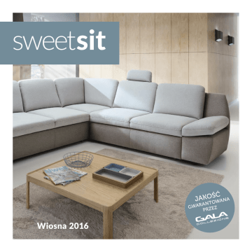 sweetsit Wiosna 2016 MARKA SWEET SIT Sweet Sit to marka polecana zwolennikom standardowego wzornictwa i prostych rozwiązań funkcjonalnych. Meble marki Sweet Sit to rozwiązanie idealne do mniejszych mieszkań, służące zarówno do wypoczynku, jak też do spania codziennego. Dostępne są w szerokiej gamie kolorystycznej tkanin, dzięki czemu łatwo można je dopasować do wystroju pokoju dziennego czy sypialni. To marka przede wszystkim dla osób które lubią urządzać mieszkanie w sposób praktyczny, a jednocześnie – komfortowy i piękny wizualnie. OBJAŚNIENIA SYMBOLI pojemnik na pościel sprężyny faliste funkcja spania pianka poliuretanowa oparcie z luźnymi poduszkami pianka wysokoelastyczna oparcie ze stałymi poduszkami nóżki drewniane ruchome elementy nóżki plastikowe sprężyny bonell nóżki chromowane nóżki niewidoczne Meble dostępne w skróconym terminie realizacji – do 4 tygodni w zależności od dostępności Standardowy termin realizacji (od 6 do 8 tygodni) Oferta niniejsza nie jest ofertą w rozumieniu przepisów Kodeksu Cywilnego. Kolorystyka tapicerki może odbiegać od prezentowanej na zdjęciach. Producent zastrzega sobie prawo dokonywania zmian konstrukcyjnych w oferowanych modelach nie zmieniając ich ogólnego charakteru. Wymiary mebli tapicerowanych są podane z tolerancją 3%. NOWOŚĆ Focus str. 4-5 NOWOŚĆ Florenz str. 6-7 NOWOŚĆ Geneve str. 8-9 Happy str. 10-11 Vapiano str. 12-13 Melba str. 14-15 Trigo str. 16-17 Siro str. 18-19 Siro str. 20-21 Flow str. 22-23 Lilo str. 24-25 Vini str. 26 Dodatki str. 27 elementy kolekcji FOCUS w SKRÓCONYM terminie realizacji Narożnik z funkcją spania 2.5QFL-EN(2)-2.5SP Porto 31 / Porto 34 Narożnik z funkcją spania 2.5SL-EN(2)-2.5QFP NAROŻNIK FOCUS 2.5QFL-EN(2)-2.5SP, tkanina PORTO 31/ PORTO 34 4 NOWOŚĆ FOCUS szer. / gł. / wys. 252 / 252 / 84 cm pow. spania 124 x 184 cm Mebel dostępny w szerokiej gamie tkanin system rozkładania DELFIN 5 elementy kolekcji Florenz w standardowym terminie realizacji Narożnik z funkcją spania OTM(4)SL-2.5QFP Narożnik z funkcją spania 2.5QFL-OTM(4)SP Narożnik Florenz 2.5QFL-OTM(4)SP, tkanina MORIC6 6 NOWOŚĆ FLORENZ szer. / gł. / wys. 257 / 232 / 80 - 97 cm pow. spania 123 x 191 cm Mebel dostępny w szerokiej gamie tkanin system rozkładania DELFIN 7 elementy kolekcji GENEVE w standardowym terminie realizacji Narożnik z funkcją spania OTM(4)SL-2.5QFP+ZAG Narożnik z funkcją spania 2.5QFL-OTM(4)SP+ZAG Narożnik GENEVE 2.5QFL-OTM(4)SP+ZAG, tkanina MORIC3 8 NOWOŚĆ GENEVE szer. / gł. / wys. 249 / 219 / 88 cm pow. spania 121 x 191 cm Mebel dostępny w szerokiej gamie tkanin system rozkładania DELFIN 9 elementy kolekcji HAPPY w SKRÓCONYM terminie realizacji Narożnik z funkcją spania OTM(4)SL-2,5QFP Cairo 37 Narożnik z funkcją spania 2,5QFL-OTM(4)SP Narożnik z funkcją spania OTM(4)SL-2,5QFP Loca 20 Narożnik z funkcją spania 2,5QFL-OTM(4)SP Narożnik HAPPY OTM(4)SL-2,5QFP, tkanina Cairo 37 (opcjonalna poduszka - tkanina Magu Jet 198) 10 happy szer. / gł. / wys. 273 / 201 / 82-98 cm pow. spania 193 x 128 cm Mebel dostępny w szerokiej gamie tkanin system rozkładania DELFIN 11 elementy kolekcji Vapiano w SKRÓCONYM terminie realizacji Narożnik z funkcją spania OTMSL-2.5QFP Bella 03 Narożnik z funkcją spania 2.5QFL-OTMSP Narożnik z funkcją spania OTMSL-2.5QFP Bella 13 Narożnik z funkcją spania 2.5QFL-OTMSP Narożnik Vapiano 2,5QFL-OTMSP, tkanina Bella 03 12 VAPIANO szer. / gł. / wys. 274 / 206 / 81-95 cm pow. spania 128 x 193 cm Mebel dostępny w szerokiej gamie tkanin system rozkładania DELFIN 13 elementy kolekcji MELBA w SKRÓCONYM terminie realizacji Narożnik z funkcją spania OTM(4)SL-2.5QFP+ZAG Bark 05 Narożnik z funkcją spania 2.5QFL-OTM(4)SP+ZAG Narożnik z funkcją spania OTM(4)SL-2.5QFP+ZAG Porto 31 Narożnik z funkcją spania 2.5QFL-OTM(4)SP+ZAG Inne konfiguracje zobaczysz na www.SweetSit.eu 14 Narożnik 2.5QFL-OTM(4)SP z opcjonalnymi zagłówkami, tkanina Bella 03, opcjonalne poduszki tkanina Folk, tkanina Tuoni 206 MELBA szer. / gł. / wys. 247 / 190 / 89 cm pow. spania 125 x 189 cm Mebel dostępny w szerokiej gamie tkanin system rozkładania DELFIN 15 elementy kolekcji TRIGO w standardowym terminie realizacji Pufa TM szer. / gł. / wys.: 50 / 50 / 40 cm Fotel stały 1 szer. / gł. / wys.: 93 / 88 / 84 cm Narożnik z funkcją spania OTM(1)SL-2QFP Narożnik z funkcją spania 2QFL-OTM(1)SP Narożnik TRIGO OTM(1)SL-2QFP, tkanina Aston 17, wstawka Aston 16 16 TRIGO szer. / gł. / wys. 230 / 168 / 82 cm pow. spania 122 x 196 cm Mebel dostępny w szerokiej gamie tkanin system rozkładania DELFIN 17 elementy kolekcji SIRO w SKRÓCONYM terminie realizacji Sofa z funkcją spania 3F SS 120 Sofa z funkcją spania 3F SS 140 Sofa z funkcją spania 3F SS 150 SOFA SIRO 3F, układ tkanin SS 120 18 siro szer. / gł. / wys. 205 / 101 / 89 cm pow. spania 157 x 205 cm Mebel dostępny w szerokiej gamie tkanin system rozkładania DL 19 elementy kolekcji SIRO w standardowym terminie realizacji Narożnik z funkcją spania OTML-2FP Narożnik z funkcją spania 2FL-OTMP Narożnik SIRO 2FL-OTMP, tkanina DOT 15 / SOFT 29 20 siro szer. / gł. / wys. 241 / 172 / 89 cm pow. spania 133 x 225 cm Mebel dostępny w szerokiej gamie tkanin system rozkładania DL 21 elementy kolekcji FLOW w SKRÓCONYM terminie realizacji Narożnik z funkcją spania 1DL-2FP FN 120 Narożnik z funkcją spania 2FL-1DP Narożnik z funkcją spania 1DL-2FP FN 140 Narożnik z funkcją spania 2FL-1DP Narożnik z funkcją spania 1DL-2FP FN 150 Narożnik z funkcją spania 2FL-1DP Narożnik FLOW 2FL-1DP, układ tkanin FN 140 22 FLOW szer. / gł. / wys. 267 / 183 / 84 cm pow. spania 136 x 207 cm Mebel dostępny w szerokiej gamie tkanin system rozkładania DL 23 elementy kolekcji LILO w SKRÓCONYM terminie realizacji Sofa z funkcją spania 3F LS 120 Sofa z funkcją spania 3F LS 140 Sofa z funkcją spania 3F LS 150 SOFA LILO 3F, układ tkanin LS 140 24 Lilo szer. / gł. / wys. 215 / 100 / 88 cm p