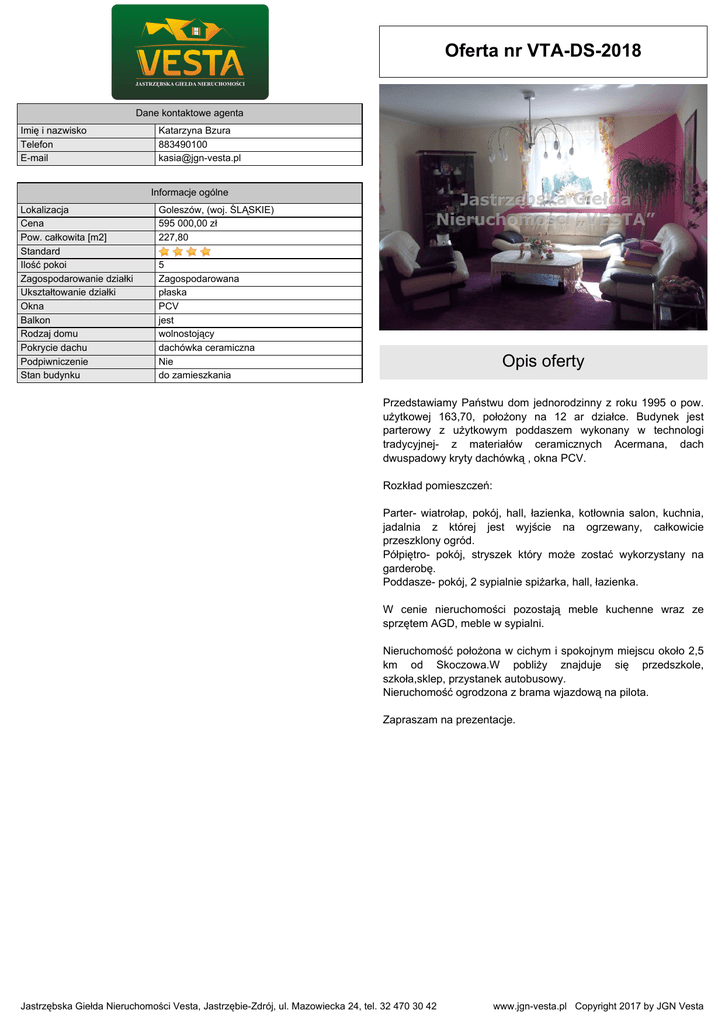 Oferta nr VTA-DS-2018 - Jastrzębska Giełda Nieruchomości Vesta