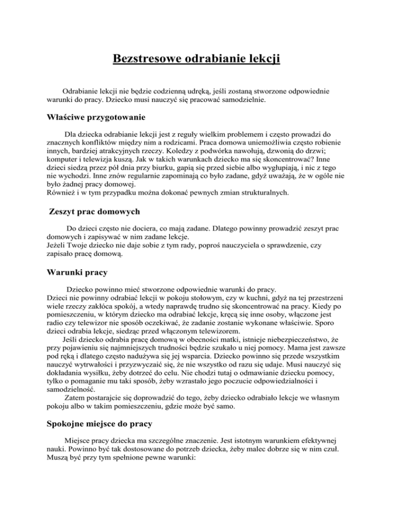 bezstresowe odrabianie lekcji