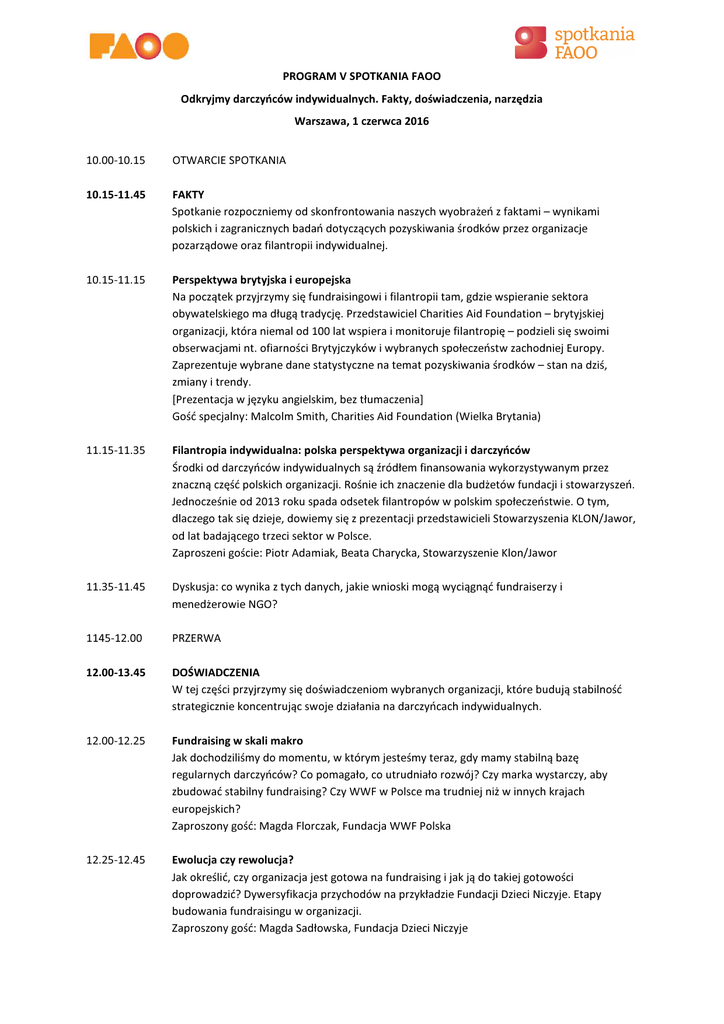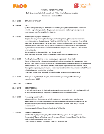 PROGRAM V SPOTKANIA FAOO Odkryjmy darczyńców