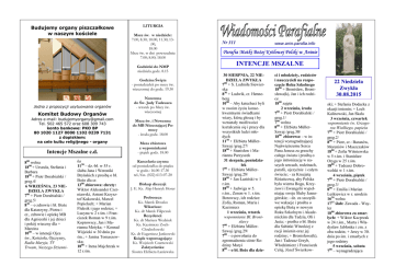 intencje mszalne - Parafia Matki Bożej Królowej Polski