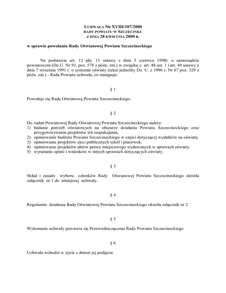 UCHWAŁA NR XVIII/107/2000 w sprawie powołania Rady