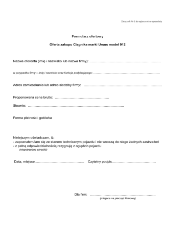 Formularz ofertowy Oferta zakupu Ciągnika marki Ursus - Eko