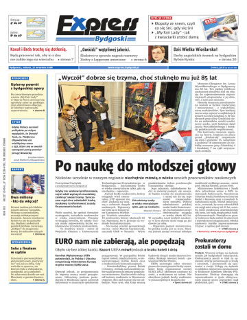 DZIŚ W EXTRA 8o do 16o Bydgoski BYDGOSKI Kanał i Brda trochę się dotlenią. Będą pracować tak, aby to z dna nie zabiło tego na wierzchu strona 7 „Gwóźdź” wątpliwej jakości. Śledztwo w sprawie nagrań rozmowy Ziobry z Lepperem umorzone strona 6 Bydgoszcz, sobota, 27 września 2008 go Dlacze �� ������ ������ ��� ����� ������� ������� ������ ��� ������� ������ �� �� ����� ����� ����� ��� ���� ������� ��� ����� �� �� ���� „Wyczół” dobrze się trzyma, choć stuknęło mu już 85 lat Muzeum Okręgowe im. Leona Wyczółkowskiego w Bydgoszczy ma 85 lat. Ten piękny jubileusz zasłużonej placówki stał się okazją do zaprezentowania najcenniejszych eksponatów z jej zbiorów, a tych jest niemało. Historia muzeum przedstawiona została w formie tradycyjnej i nowoczesnej - z wykorzystaniem multimediów. Tym bardziej warto więc zajrzeć w najbliższych dniach na ulicę Gdańską 4. W spichrzach przy ulicy Grodzkiej czeka na miłośników sztuki urodzinowy aneks, czyli kolekcja dzieł Leona Wyczółkowskiego i kolekcja polskiej sztuki współczesnej. Dla kontrastu muzeum zaprasza na festyn. Impreza na placu przed „Drukarnią” rozpocznie się dziś o godzinie 15, natomiast o godzinie 16 zapraszamy do siedziby muzeum przy Gdańskiej 4 i Grodzkiej 7 na cykl artystycznych atrakcji. Po naukę do młodszej głowy Niektóre uczelnie w naszym regionie niechętnie mówią o wieku swoich pracowników naukowych Przemysław Przybylski [email protected] Dwa miliony - kto da więcej? Prezesi żużlowych klubów stracili zdrowy rozsądek. Walcząc o zawodników, szastają niebotycznymi kwotami. Jeszcze niedawno byłoby to nie do pomyślenia. Budżety niektórych polskich klubów zaczynają „dobijać” do magicznej kwoty 10 milionów złotych strona 4 na sezon! Gdyby nie wiekowi profesorowie, część szkół wyższych musiałaby zamknąć swoje bramy. Tymczasem rząd chce odmłodzić kadrę naukową i zreformować zasady finansowania badań. Wiele uczelni, by spełnić formalne wymagania, zatrudnia naukowców w wieku emerytalnym. Przepisy wymagają bowiem, by szkoła wyższa miała odpowiednią liczbę wykładowców z tytułem profesorskim. - To drażliwy temat - mówi dr Wojciech Chmara z Uniwersytetu Technologiczno-Przyrodniczego w prodziekanów ledwo przekroczyło Bydgoszczy. - Zatrudniamy osoby trzydziestkę - dodaje. Jego zdaniem, odmłodzenie kaw wieku emerytalnym tylko, gdy są niezbędne - zapewnia. dry to świetny pomysł, ale uważa, Jednak liczby naukowców, którzy że będzie trudny do zrealizowania i raczej nie da się tego osiągnęli wiek emeryzrobić rozporządzetalny, UTP ujawnić nie Zatrudniamy osoby chce. Zasłania się ustaniem ministra. Pomysł wą o ochronie danych w wieku emerytalnym odmłodzenia polskiej osobowych. Tajemnicy tylko, gdy są niezbędne. nauki budzi kontrowernie robi za to UniwersyWojciech Chmara sje, bo humaniści szczyt tet Kazimierza Wielkieintelektualny osiągają go. Uczelnia zatrudnia w wieku około 60 lat. 15 profesorów, którzy ukończyli 65 W wypadku nauk ścisłych naukowlat. Najwięcej, bo 9, pracuje na wy- cy w tym okresie życia mają go już dziale humanistycznym. dawno za sobą. - Popieram pomysł ministerstwa, - Na naszej uczelni gerontokracji nie ma - mówi Marcin Czyżniewski, bo polska nauka jest za stara. Musirzecznik UMK w Toruniu. - Wielu my jednak zacząć stwarzać młodym WYDARZENIA EURO nam nie zabierają, ale popędzają Seks z finałem w sądzie Obyło się bez żółtej kartki. Raport UEFA mówił jednak o braku hoteli i dróg Uczennica pierwszej klasy gimnazjum swój „pierwszy raz” ma już za sobą. Gdy wróciła ze spaceru, na którym była z chłopakiem, oznajmiła, że ją zgwałcił. Do zdarzenia doszło we wsi Pławinek w gminie Inowrocław. strona 5 Komitet Wykonawczy UEFA potwierdził, że Polska i Ukraina zorganizują mistrzostwa Europy w piłce nożnej EURO 2012. Ostrzegł jednak, że przygotowania do imprezy muszą zostać przyspieszone. Odczytany podczas posiedzenia w Bordeaux raport zawierał informacje o znacznym opóźnieniu przygotowań. W przypadku Polski raport mówił, między innymi, o niewystarczającej liczbie hoteli oraz o trudnościach komunikacyjnych. - Potwierdziliśmy prawa Polski i Ukrainy. Jednak zachowaliśmy sobie nadal prawo do zmiany gospodarza mistrzostw. Bardzo wiele zależy od budowy stadionów w Warszawie i Kijowie. Bez nich turniej się nie odbędzie. Poza tym, oba kraje muszą budować drogi i modernizować lotniska. Brakuje również hoteli - powiedział Michel Platini. UEFA zastrzegła sobie również prawo do zmniejszenia liczby miast, które będą organizować turniej EURO 2012. Minimum ustalono na sześć, a maksimum na osiem. Nie określono jednak liczby stadionów w poszczególnych krajach.(ks) Sport strona 18 �� �� ���� Cena 1,30 zł (w tym 7% VAT) Fot. Tadeusz Pawłowski NR 227 (5954) „B” ISSN 1230-9192, NR INDEKSU 350680 �� ��� ���� cach? ” po no ką się inni „tłu Derby angielskich ósemek na bydgoskim Rybim Rynku strona 20 CYTAT ROK XIX jak ��� ����� ������ ������ ����������� � ��� ����� Po czwartkowym przedstawieniu „My Fair Lady” w Operze Nova utworzył się ogromny zator na parkingu. Jego dzierżawca obiecuje, że wkrótce wprowadzi usprawnienia. strona 8 RAPORT ypiają zas jedni ,a kamień Dziś Wielka Wioślarska! Upiorny powrót z bydgoskiej opery Jarosław Gowin, poseł Platformy Obywatelskiej �� ����� ����� ������ ����� www.express.bydgoski.pl BYDGOSZCZ Gdyby Polacy oceniali polityków po miłym wyglądzie, to Donald Tusk, ja, Platforma Obywatelska nie mielibyśmy szan