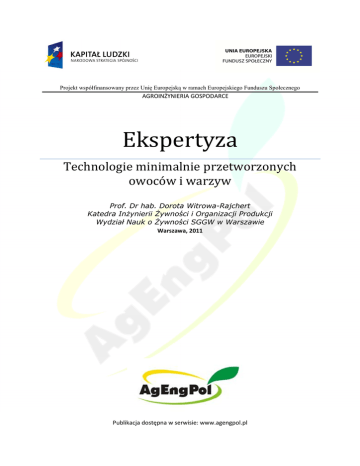 Projekt współfinansowany przez Unię Europejską w ramach Europejskiego Funduszu Społecznego AGROINŻYNIERIA GOSPODARCE Ekspertyza Technologie minimalnie przetworzonych owoców i warzyw Prof. Dr hab. Dorota Witrowa-Rajchert Katedra Inżynierii Żywności i Organizacji Produkcji Wydział Nauk o Żywności SGGW w Warszawie Warszawa, 2011 Publikacja dostępna w serwisie: www.agengpol.pl 1. Wstęp Technologia minimalnego przetworzenia owoców i warzyw to taki sposób łagodnego przetwórstwa, który gwarantuje otrzymanie żywności w jak największym stopniu zbliżonej do surowca, czyli świeżej lub o zachowanej świeżości, ale charakteryzującej się trwałością, zapewniającą jej bezpieczeństwo podczas dystrybucji, sprzedaży i użytkowania przez okres od kilku do najczęściej dwudziestu dni (przy zachowaniu odpowiednich warunków przechowywania). Mimo niskiego stopnia przetworzenia, producenci, wychodząc naprzeciw oczekiwaniom konsumentów, starają się, aby takie produktu miały cechy żywności wygodnej, czyli prawie gotowe (semi prepared), lub gotowej do spożycia. Warzywa i owoce minimalnie przetworzone (najczęściej stosowany skrót w języku polskim WOMP) są obecnie coraz częściej określane w języku angielskim jako fresh-cut (świeże krojone), chociaż początkowo były określane jako minimalne (minimal) lub lekko/nieznacznie (lightly/slightly) przetworzone. Wydaje się, że technologia takich produktów nie jest skomplikowana. Nie jest to jednak prawda. Konieczność zachowania cech świeżego surowca wyklucza utrwalanie z zastosowaniem wysokiej temperatury lub zamrażania, co wymusza zachowanie odpowiedniego reżimu procesu technologicznego, zapewniającego otrzymanie produktu bezpiecznego, o jakości zbliżonej do jakości świeżej tkanki. Jednak, w przeciwieństwie do wielu innych działów przetwórstwa, nakłady inwestycyjne na uruchomienie produkcji są stosunkowo niewielkie, stąd jest to interesująca oferta działalności dla niewielkich zakładów przemysłowych. 2. Charakterystyka rynku owoców i warzyw minimalnie przetworzonych Specjaliści, oceniający polski rynek owoców i warzyw minimalnie przetworzonych, zgodnie twierdzą, że jest to asortyment stosunkowo nowy w branży przetwórczej. Natomiast, według amerykańskiej organizacji producentów żywności „fresh-cut” (IFPA - The International Fresh-cut Produce Association), tego typu produkty były dostępne w supermarketach w Stanach Zjednoczonych już w latach trzydziestych ubiegłego wieku. Jednak, przemysł minimalnie przetworzonych produktów początkowo zaopatrywał przede wszystkim hotele, restauracje, firmy kateringowe itp. Dla takich odbiorców oraz segmentów przemysłu spożywczego, zajmujących się produkcją żywności o wysokim stopniu przetworzenia, produkty typu WOMP charakteryzują się wieloma zaletami, np. możliwością zmniejszenia liczby osób zatrudnionych, ograniczeniem zapotrzebowania na specjalistyczny sprzęt do rozdrabniania surowców i usuwania odpadów oraz możliwością skrócenia czasu przygotowania posiłków i produktów. Szczególny wzrost zainteresowania wśród indywidualnych konsumentów owocami i warzywami minimalnie przetworzonymi nastąpił w ostatnich dwóch dekadach, jako wynik generalnego trendu zwiększenia spożycia świeżych owoców i warzyw. Dlatego również wzrasta produkcja owoców i warzyw mało przetworzonych, głównie ze względu na zwiększającą się tendencję spożywania zdrowej i wygodnej żywności oraz zainteresowanie znaczeniem żywności w poprawie dobrobytu człowieka. Jest to konsekwencja zaleceń różnych organizacji, takich jak Światowa Organizacja Zdrowia (WHO), Organizacja Wyżywienia i Rolnictwa (FAO), Amerykański Departament Rolnictwa (USDA), Europejski Urząd Bezpieczeństwa Żywności (EFSA), wskazujących na konieczność zwiększenia spożycia owoców i warzyw, które sprzyjają ograniczeniu ryzyka chorób układu krążenia i nowotworowych. Prawdopodobnie, w wyniku zwiększonej świadomości społecznej w zakresie znaczenia zdrowych nawyków żywieniowych, spożycie świeżych owoców i warzyw w ostatnich latach rzeczywiście wzrasta. W Polsce, według Raportu Instytutu Rolnictwa i Gospodarki Żywnościowej, spożycie owoców w 2009 r. wynosiło 55 kg na osobę, a warzyw 115 kg, podczas gdy w latach 1971-1975 odpowiednio 23 i 91 kg. Mimo tak znacznego wzrostu, aktualnie w Polsce średni poziom spożycia owoców i warzyw świeżych w przeliczeniu na jednego mieszkańca cały czas należy do najniższych w Unii Europejskiej (średnio na jednego mieszkańca UE przypadało w 2009 r. 115 kg owoców i 110 kg warzyw). Na dynamikę przyrostu konsumpcji mało przetworzonych owoców i warzyw ma również wpływ powszechna dostępność tych produktów w sieciach supermarketów, które mogą zapewnić warunki chłodniczej sprzedaży i dopilnować racjonalnego ich zagospodarowania przed upływem terminu przydatności do spożycia. Z drugiej strony, owoce i warzywa minimalnie przetworzone są doskonałym sposobem dostarczenia konsumentowi żywności wygodnej, „gotowej do spożycia” (ready-to-eat). Umyte, rozdrobnione i zapakowane świeże owoce i warzywa umożliwiają spożywanie zdrowych posiłków „w biegu” i pozwalają zaoszczędzić czas na ich przygotowywanie. Zapewnienie dostępności minimalnie przetworzonych owoców i warzyw w automatach w szkołach, miejscach pracy, na stacjach benzynowych itp. to doskonała strategia poprawy właściwości odżywczych przekąsek i dań gotowych, szczególnie w sytuacji, gdy otyłość i choroby dietozależne są problemem wielu ludzi. Oprócz wygody stosowania, ważną przyczyną powodzenia minimalnie przetworzonych owoców i warzyw, z punktu widzenia konsumenta, jest brak odpadów, powstających podczas obierania i krojenia surowców oraz ograniczenie czasu przygotowywania potraw. W USA sprzedaż minimalnie przetworzonych produktów z owoców i warzyw już w końcu min