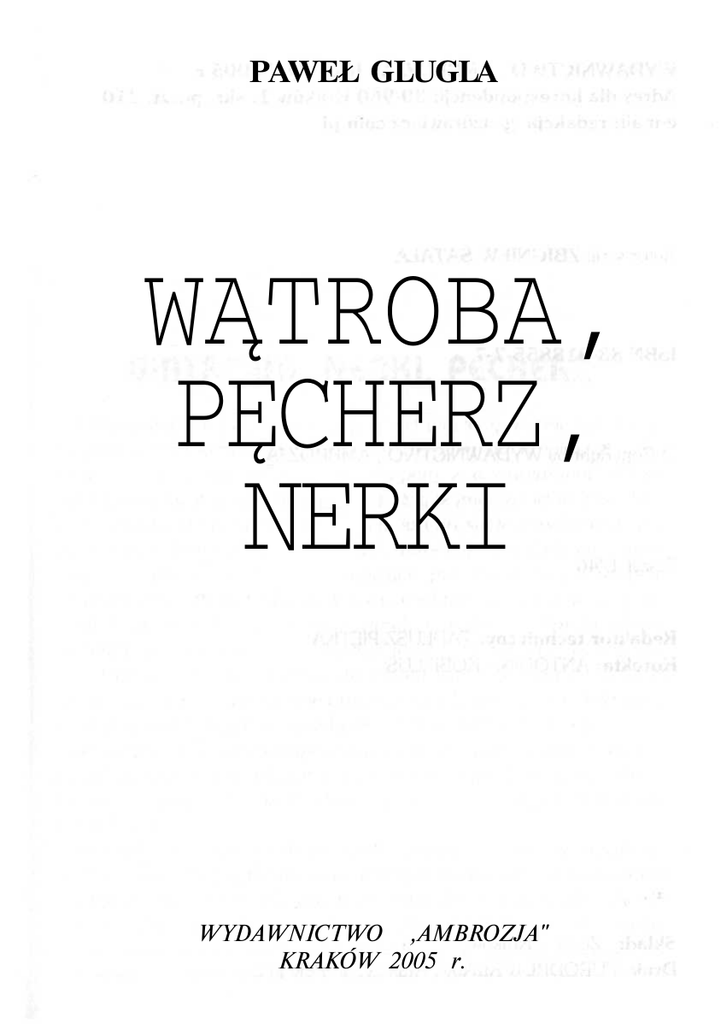 opracował tym razem świetny przewodnik po chorobach wątroby, nerek i pęcherza. Pawła Gluglę możemy zarekomendować choćby jego poprzednimi książkami „Choroby skóry", „Wszystko o chorobach oczu", „Lecznicze diety na częste choroby". Stały się
